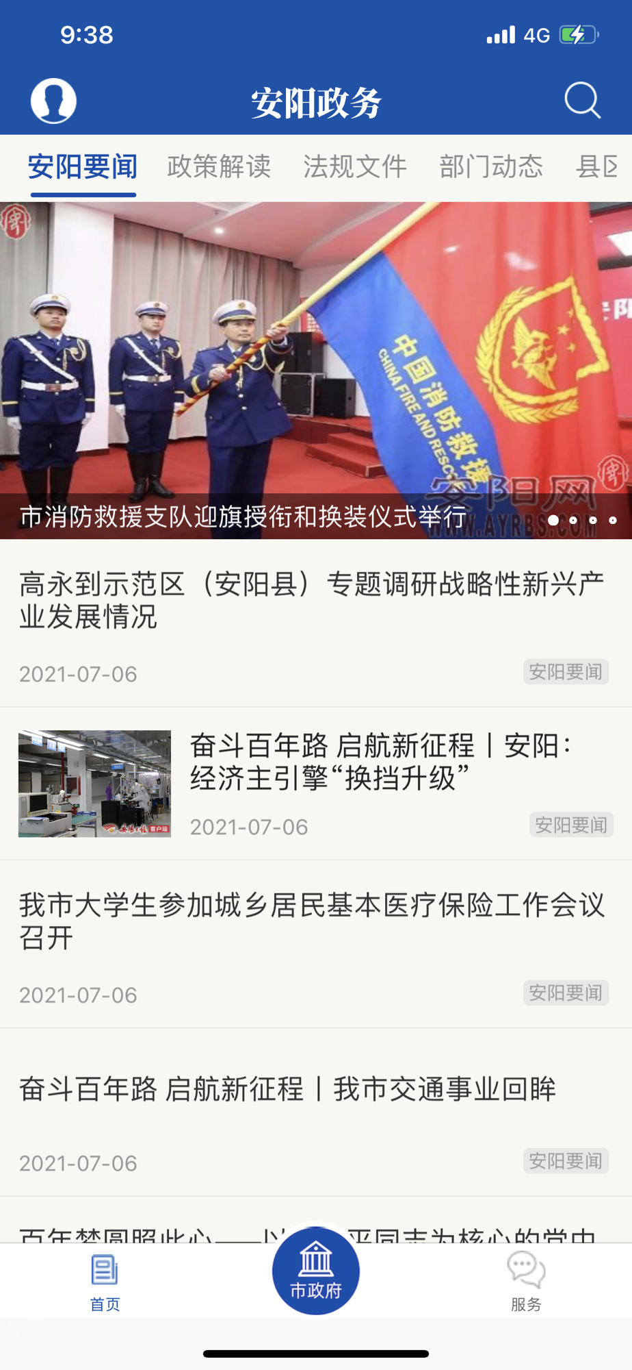 安阳政务客户端是安阳市人民政府发布政务信息的新媒体平台,由安阳市政府办公室主办。 安阳政务客户端现开通要闻咨询、法规文件、政策解读、部门动态、公告公示等栏目,权威发布安阳市政府重大决策部署和重要政策文件、安阳市政府领导同志重要会议、活动等政务信息,同时面向社会提供与政府业务相关的服务,建设基于新媒体的政府与公众交流互动的新渠道。