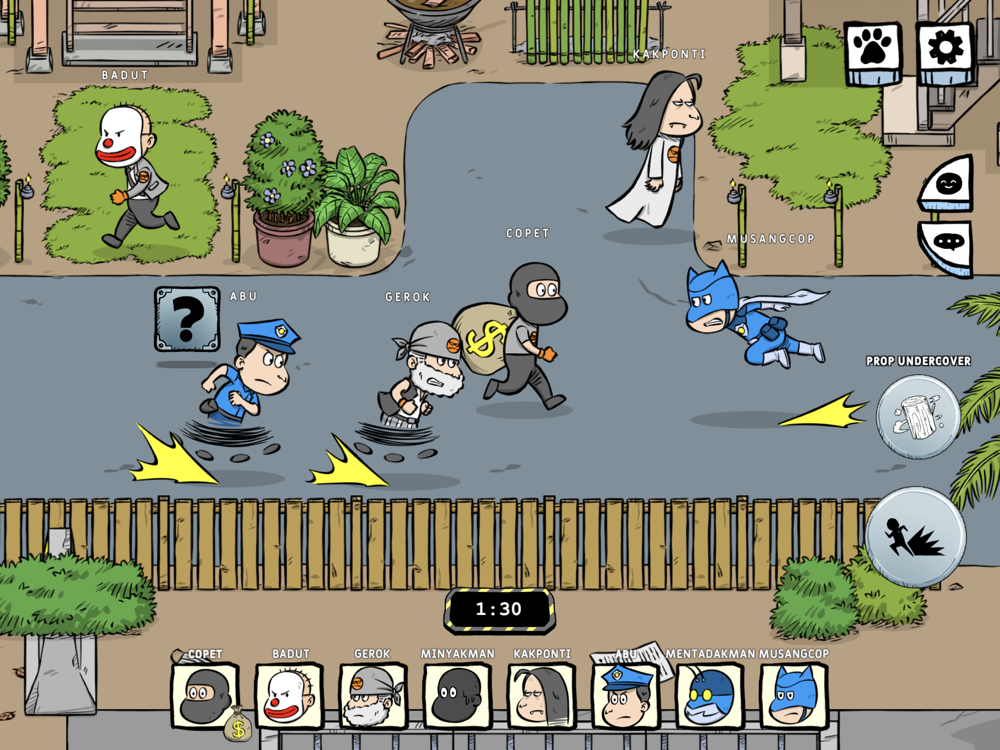 Collect various items in the level such as banana peel, disguise, lock-pick, cabbage, and exploding kitten to aid you in evading and catching or just to create havoc while having fun.