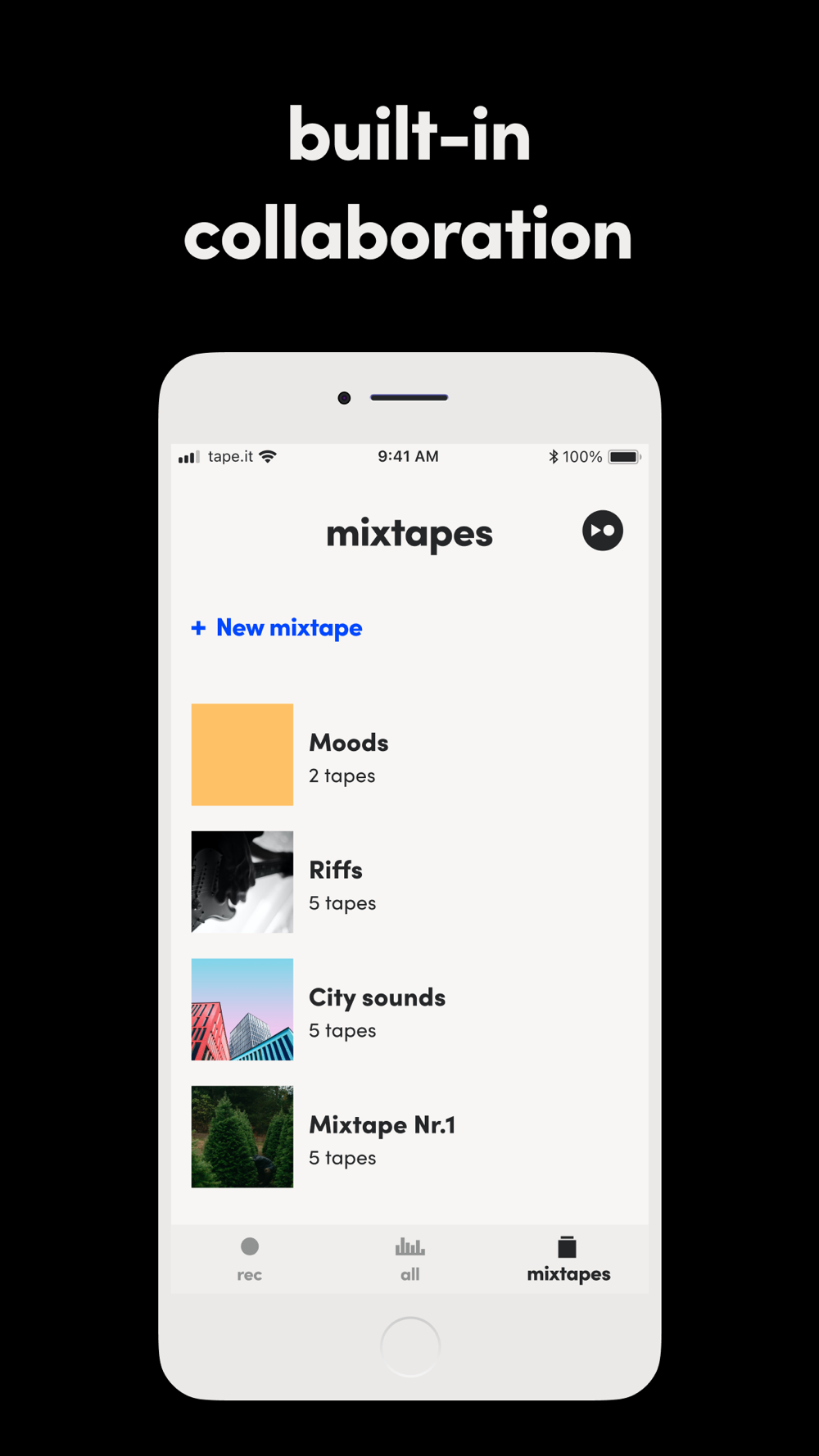 The professional songwriting & recording studio app that helps musicians capture, organize & share music ideas. We are musicians who created the app we always wanted - straightforward, powerful, and built for how artists actually work. Join thousands of professional musicians who trust Tape It! Never lose song ideas, never waste time with songwriting hassles again. Focus on what really matters: your music.