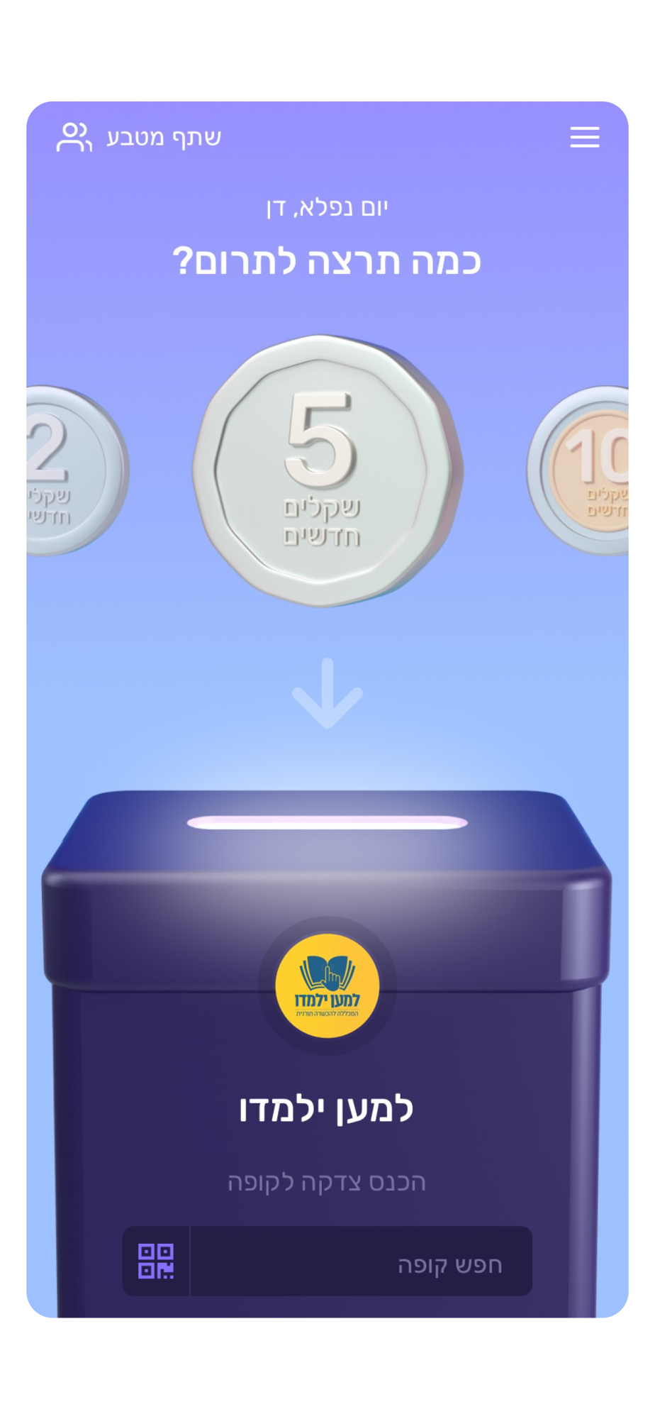 PushCoins הינה קופת צדקה דיגיטלית חדשנית וידידותית בה ניתן לתרום מטבעות של כסף קטן למוסד הצדקה האהוב עליך בכל מקום ובכל זמן.