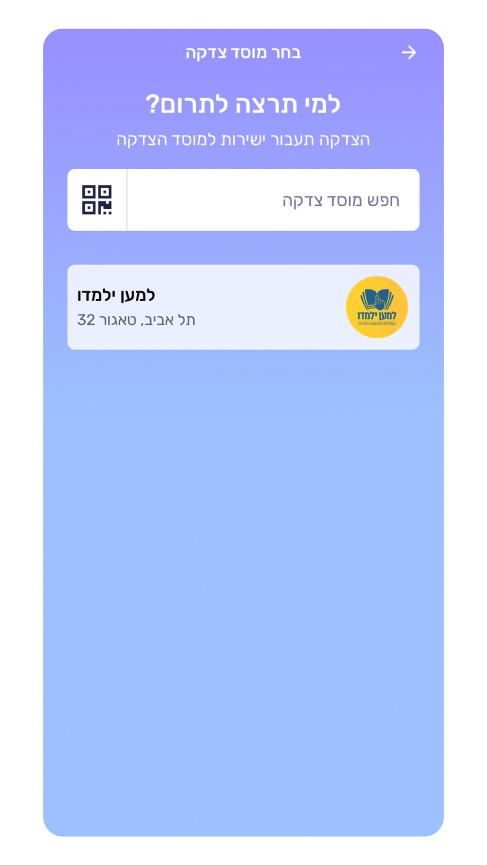 ניתן לאתר מוסדות צדקה בקלות באמצעות סריקת קוד Qr או באמצעות חיפוש שם מוסד הצדקה.