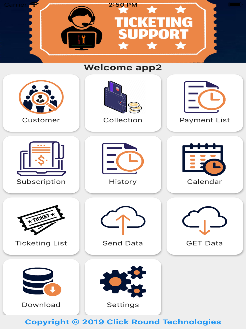 HXA Collection App for support Customer and collect money and can open a ticket and make a reply or close ticket, show calendar and history of payment and subscription can work on it with and without internet connection