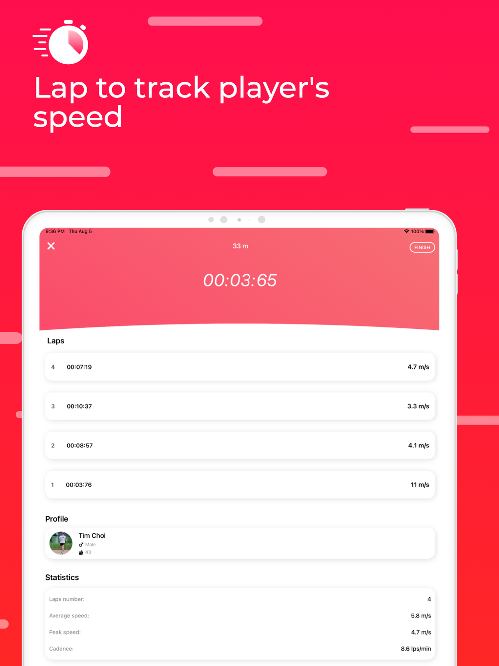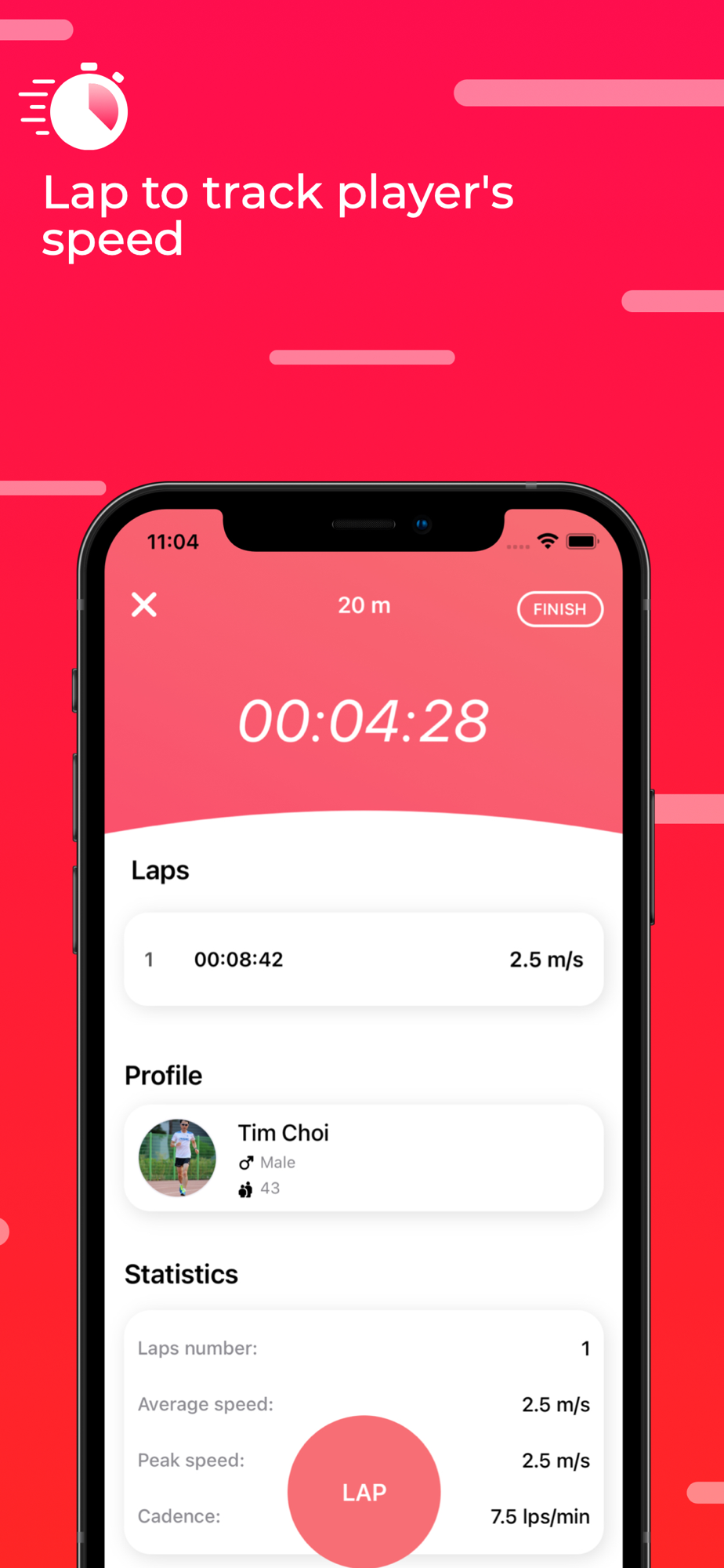 - Track all laps by pressing Lap button once the runner has covered the chosen distance