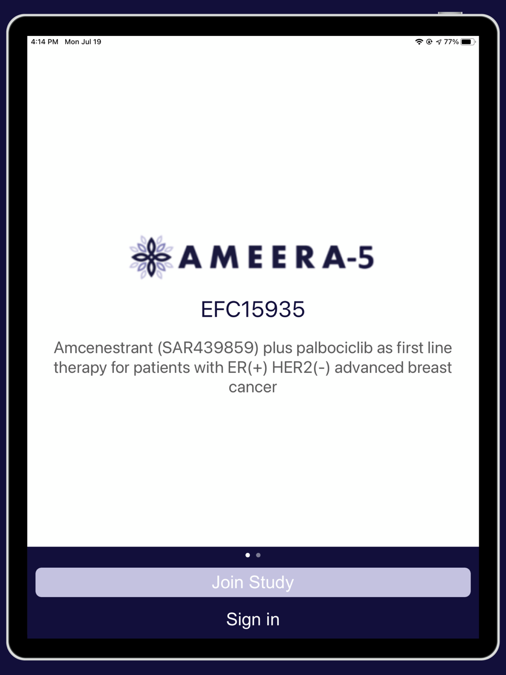 A clinical study app focused on on evaluating the safety and efficacy of Amcenestrant plus palbociclib as first line therapy for patients with ER(+) HER2(-) advanced breast cancer.