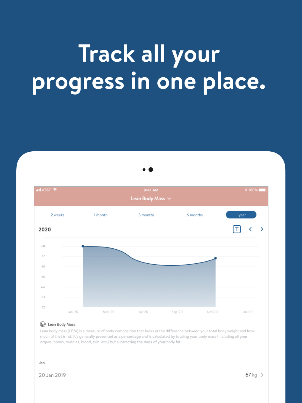 - Connect to wearable devices like Apple Watch (synced to Health app), Fitbit and Withings to sync body stats instantly