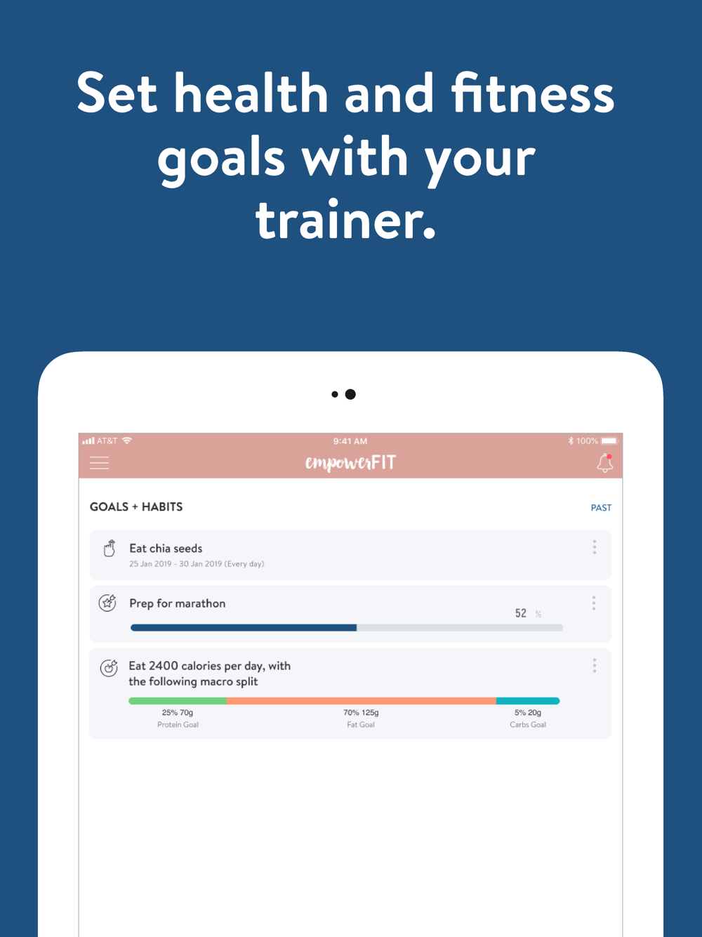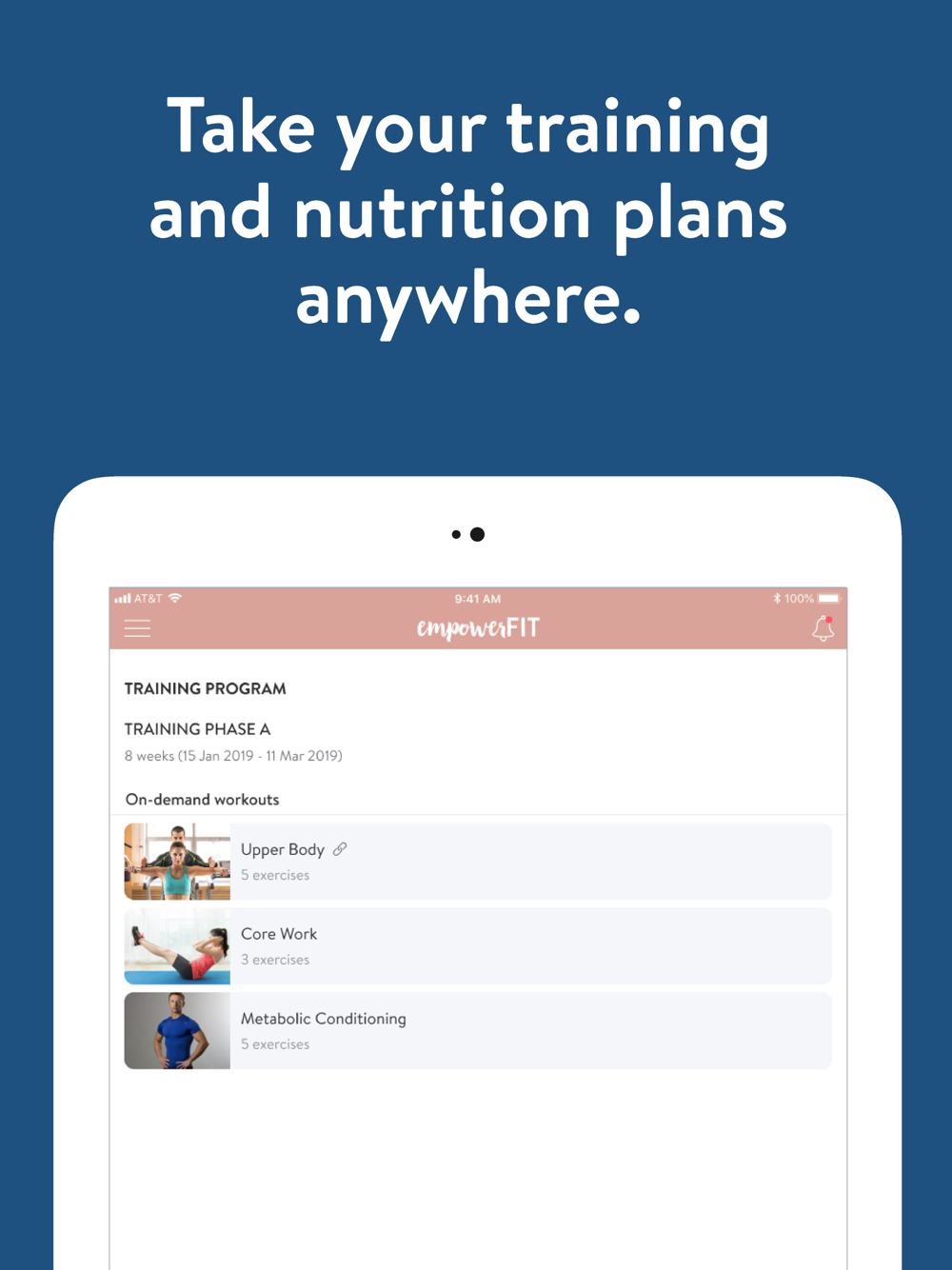 With the Empowerfit App, you can start tracking your workouts and meals, measuring results, and achieving your fitness goals, all with the help of your personal trainer.