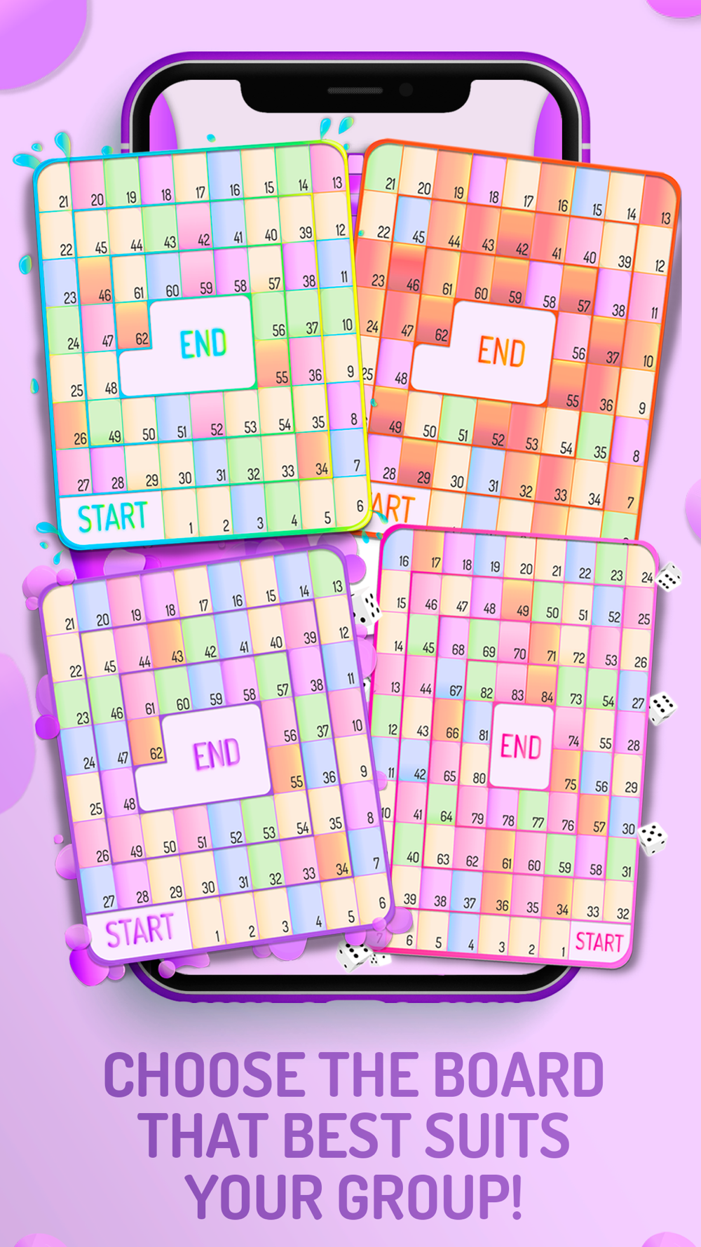 Do you also want your own game board to drink with friends? We'll save you the trouble. This drink party game comes to your devices to drink alcohol in groups everywhere without having to worry about getting wet or breaking the board. There is no limit to the number of players! The dice roller game combines the classic thrill of a board game with an adult twist. Roll the dice and navigate through an exciting game board, encountering surprises, challenges, and plenty of opportunities for fun and mischief. Each move brings you closer to discovering new truths, daring adventures, and drinking moments!