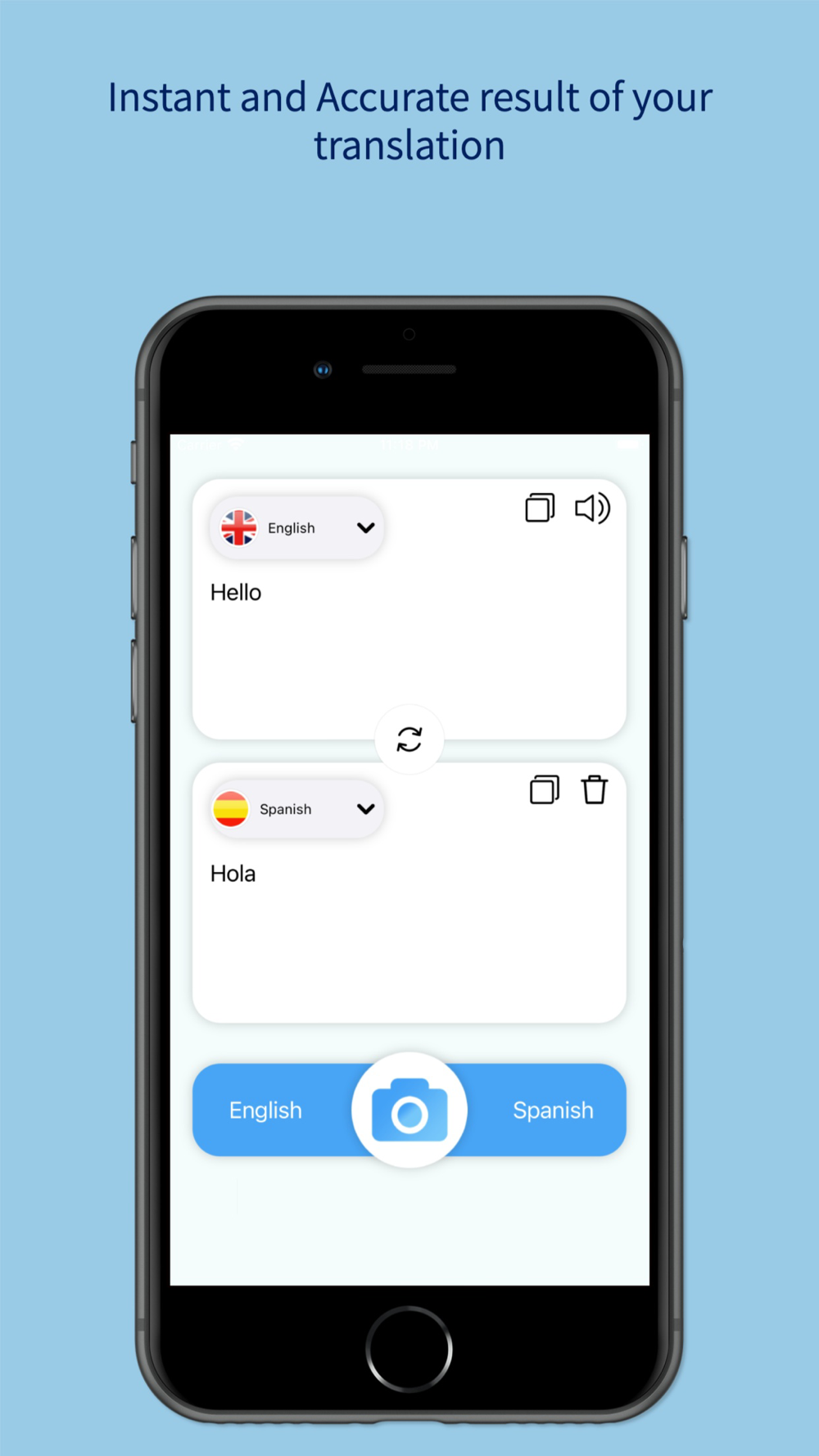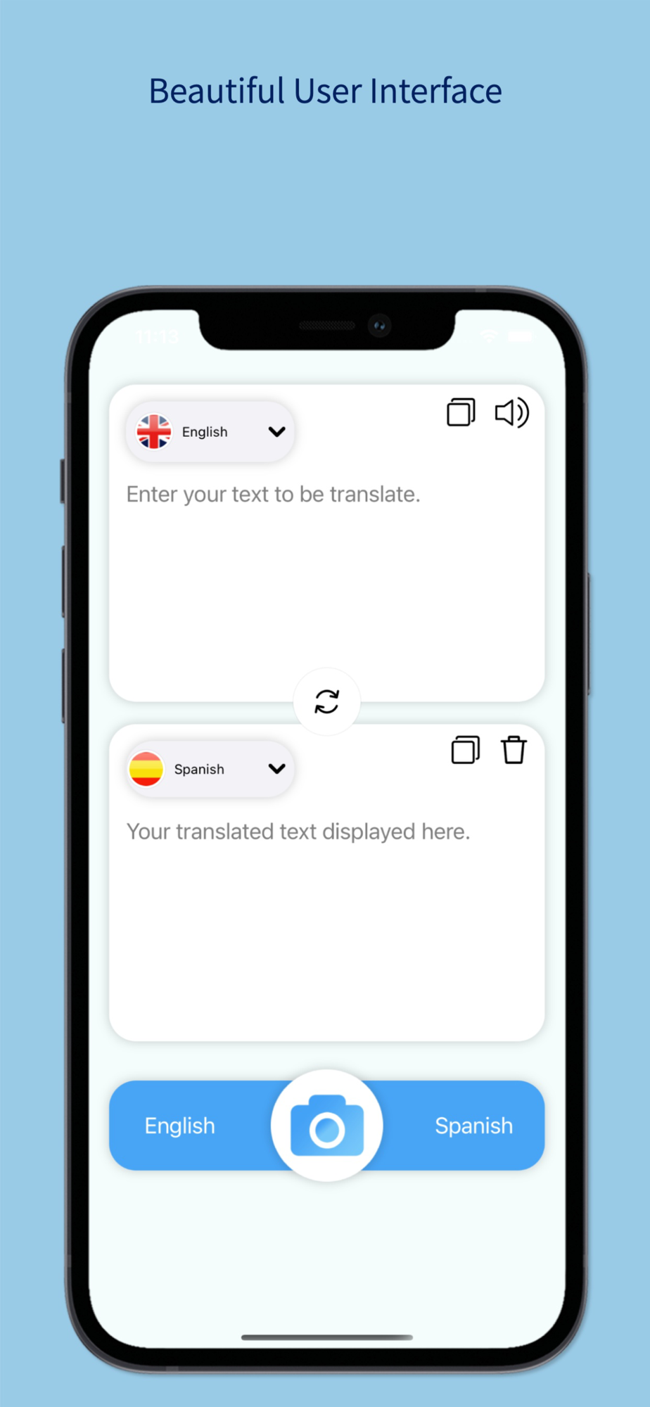 Camera Translator app has smart OCR feature which enable you to translate any text direct using camera without need of writing it.