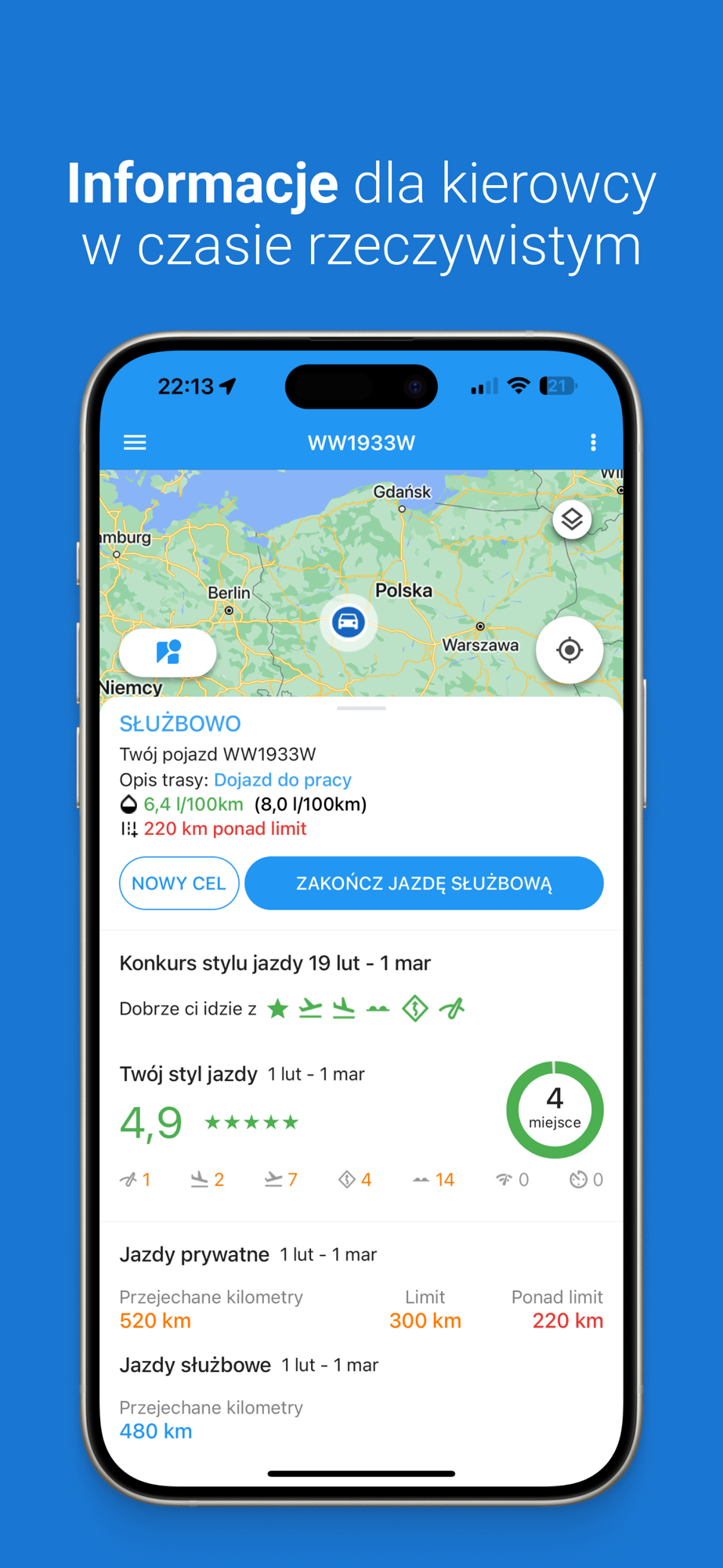 Aplikacja mobilna dla kierowcy do wyboru trybu jazdy oraz grywalizacji. W aplikacji znajdziesz ocenę stylu jazdy wraz z jej składowymi, rankingi kierowców, grywalizację (konkursy, rankingi, wskazania elementów stylu jazdy wymagających poprawy).