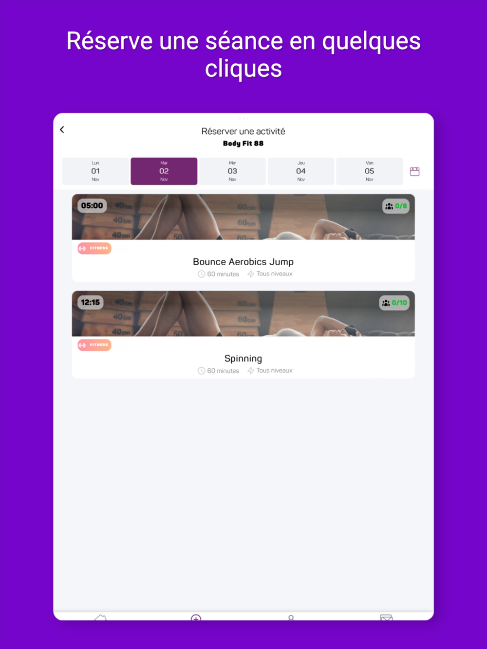 - Consulte les différents cours et réserve ta place