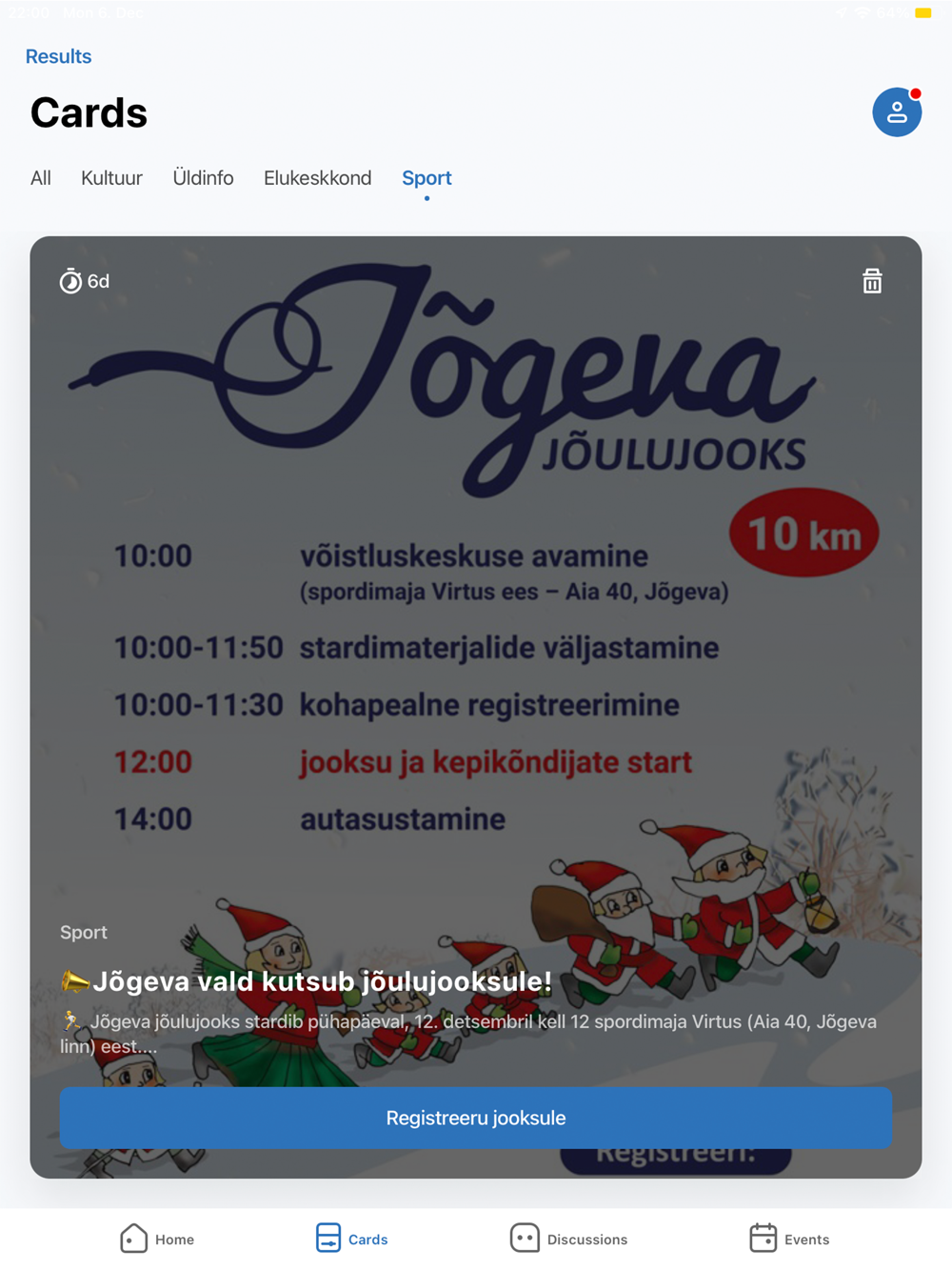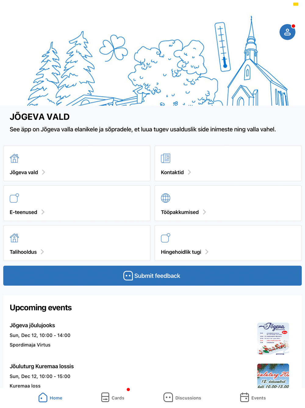 Welcome to Jõgeva vald! It was created for residents of Jõgeva municipality to connect the community and create even better engagement between the citizens and the municipality. You can ask questions, provide feedback, send pictures or messages, and get in touch with the city officials.