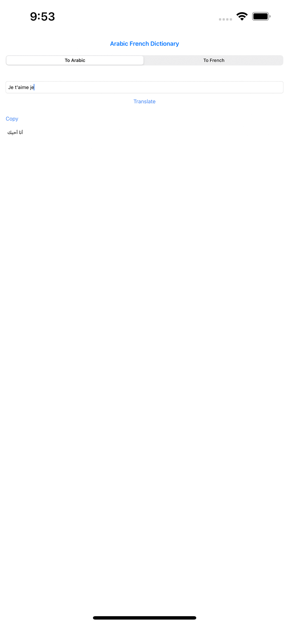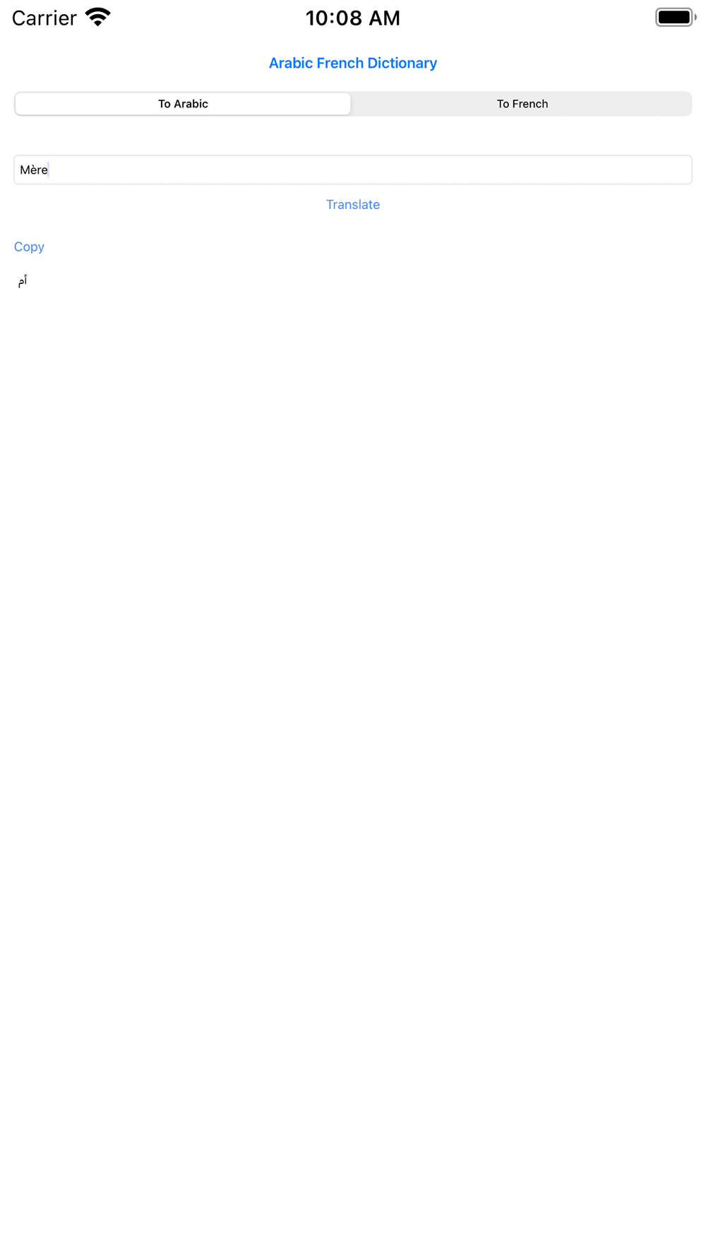 Using this app you can translate your whole French letters to Arabic, as well as Arabic to French translation, While you are typing you will see the real-time translation result, also if you paste a clipboard text, you can just click the translate button, If you want to get copied the translated result you can click the copy button.