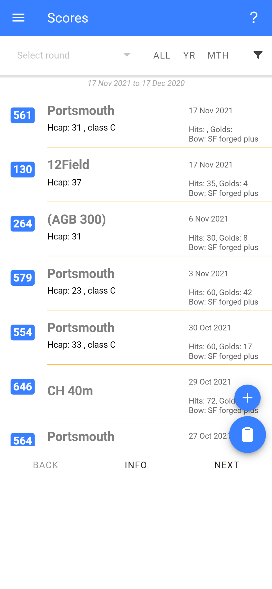 You can enter scores for rounds you have previously shot, or score a round whilst shooting. All World Archery rounds are supported along with Aussie rounds, and you will see your saved sight marks whilst shooting a round, so you can't go wrong (we hope).