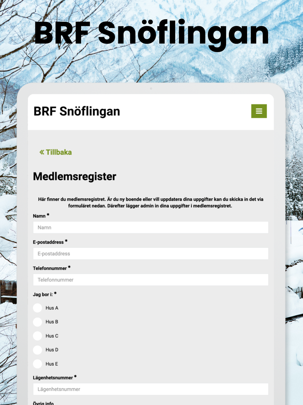 Har du bostad i BRF Snöflingan? Ladda ner vår app och maximera din bostads upplevelse! Här hittar du allt du behöver veta om din bostad i BRF Snöflingan - från medlemsförmåner till information om din lägenhet. Dela de senaste nyheterna och läs andra medlemmars inlägg på anslagstavlan eller skicka in förslag på förbättringar eller andra fel som du stött på. Ladda ner vår app idag för den ultimata bostadsupplevelsen!