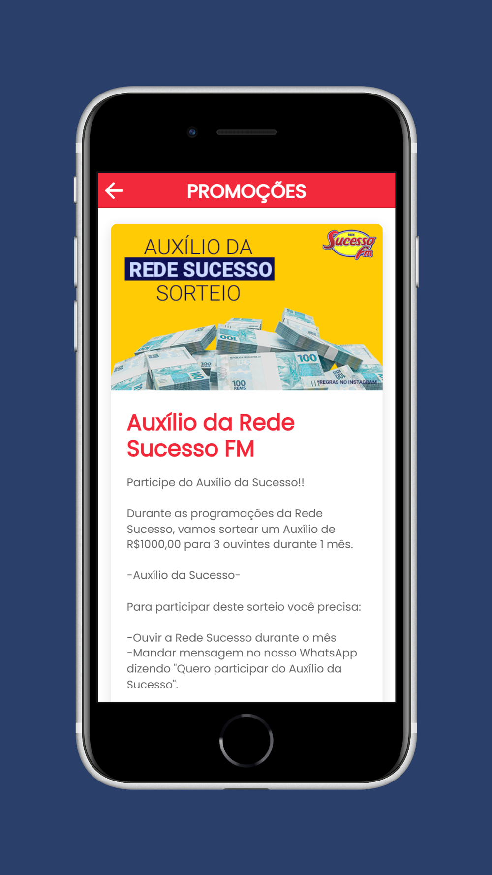 App oficial da Rede Sucesso FM, fique por dentro das principais notícias, promoções e ouça a rádio online.