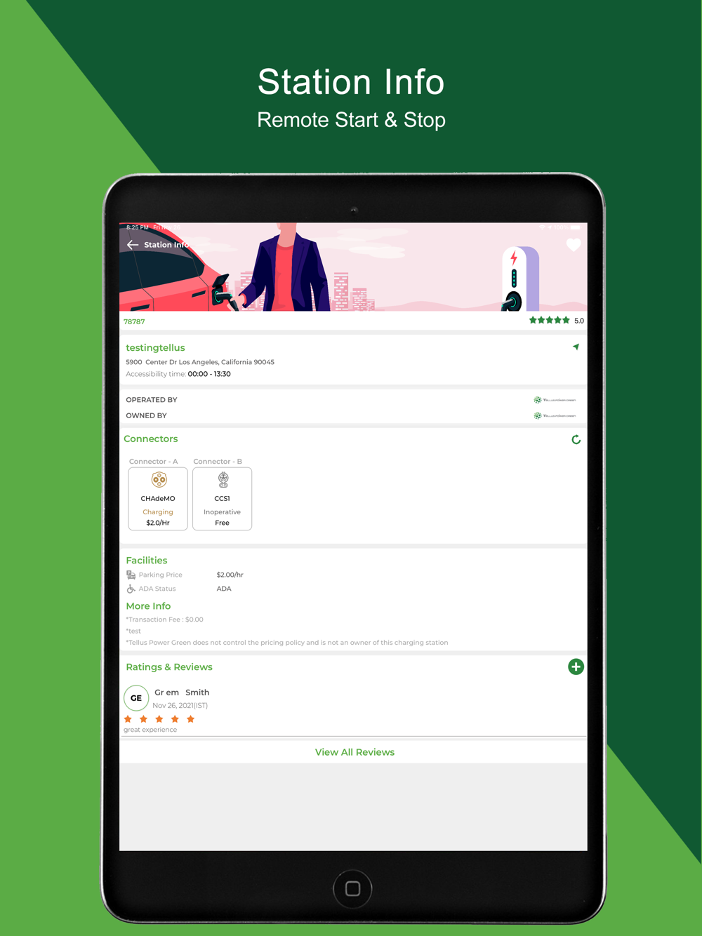 Tellus Power Green Mobile Application allows users to locate and navigate to the nearest charging stations and complete a paperless charging session. Become a member, access, and edit your account (including your profile and billing information), request RFID cards, and receive charging status notifications. Contact our 24x7 Customer Support team to Report a station issue directly from the Mobile app with the ability to provide a description and pictures. We give you complete control and visibility to your charging activity!