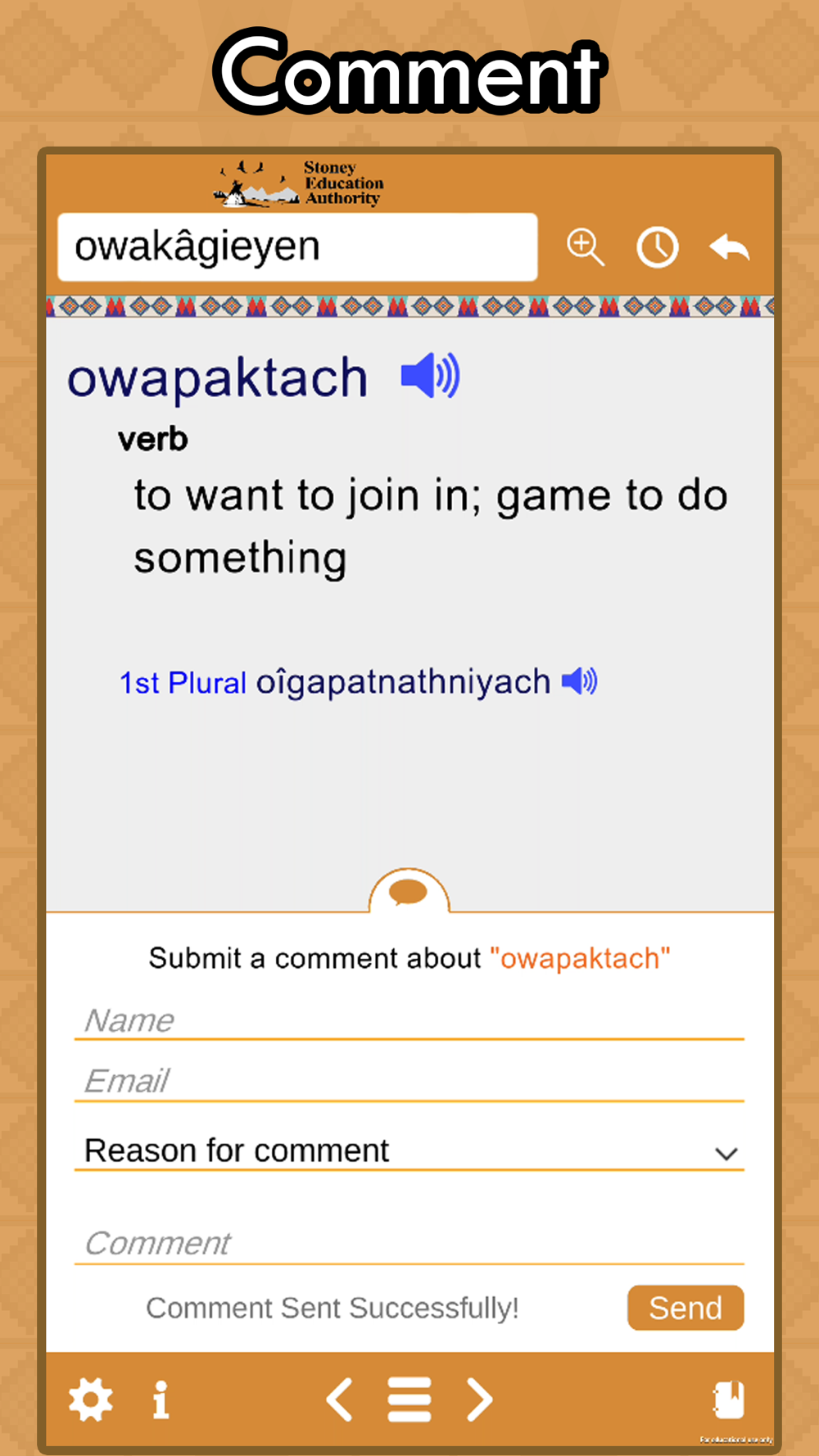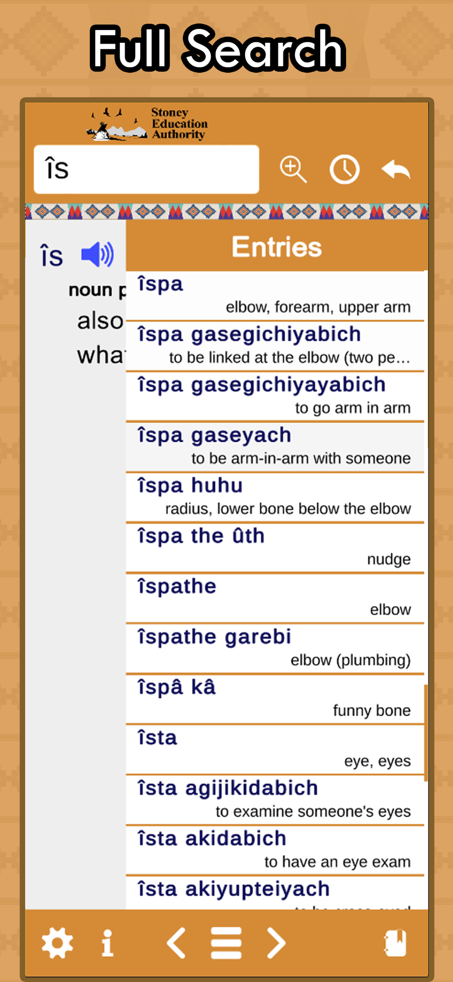 The Stoney Mobile Dictionary is the best way to look up Stoney words and hear pronunciation while on the go. It’s the ultimate electronic Stoney learning and reference tool.