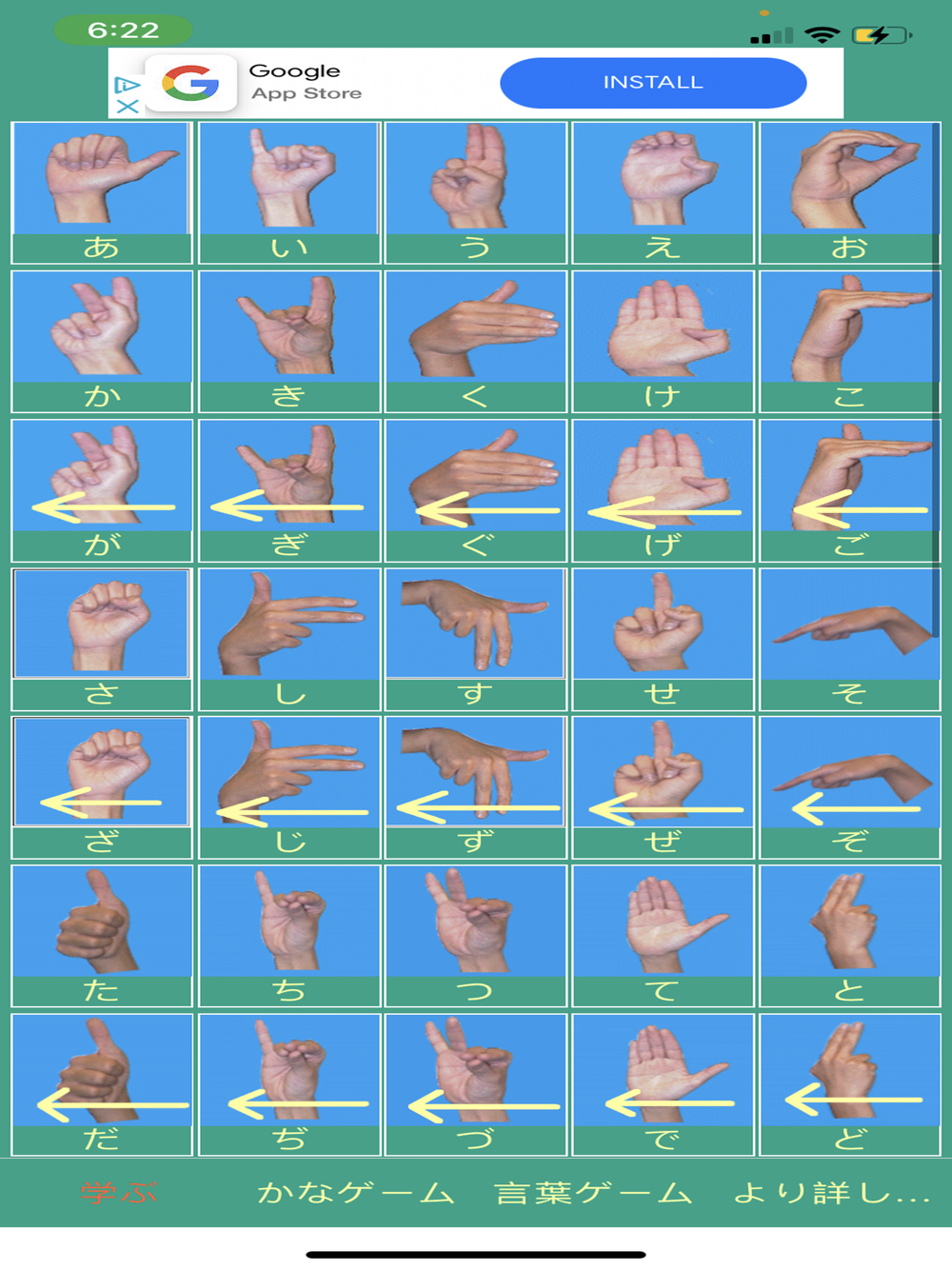 このアプリは、日本語の手話でカナを手で表すためのシステムであるフィンガースペルを学習するために使用できます。