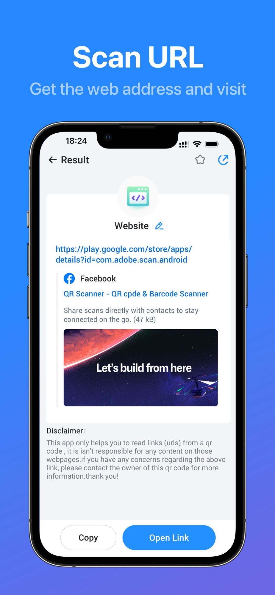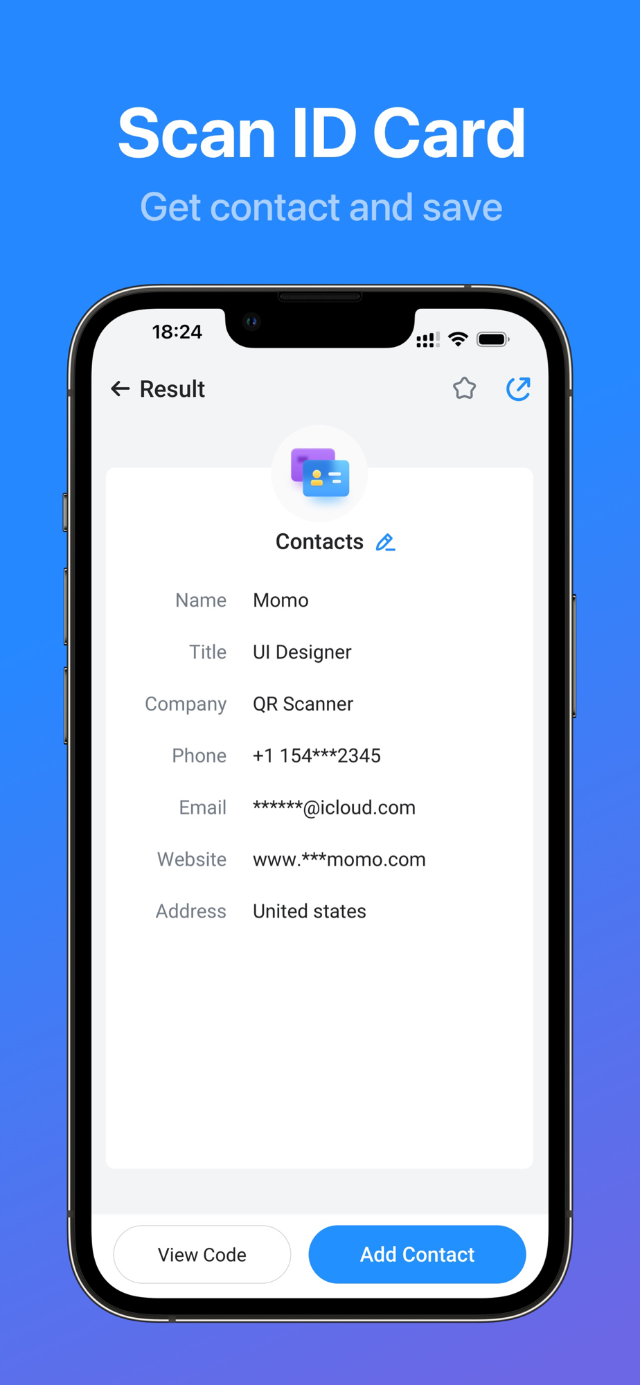 Instantly scan QR code. Support all QR & barcode formats, QR code, Data Matrix, Maxi code, Code 39, Code 93, Codabar, UPC-A, EAN-8...