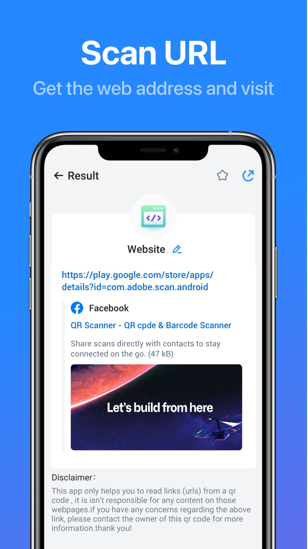 No internet connection required. All scan history will be saved for quick viewing at anytime. You can scan QR / barcodes from gallery.