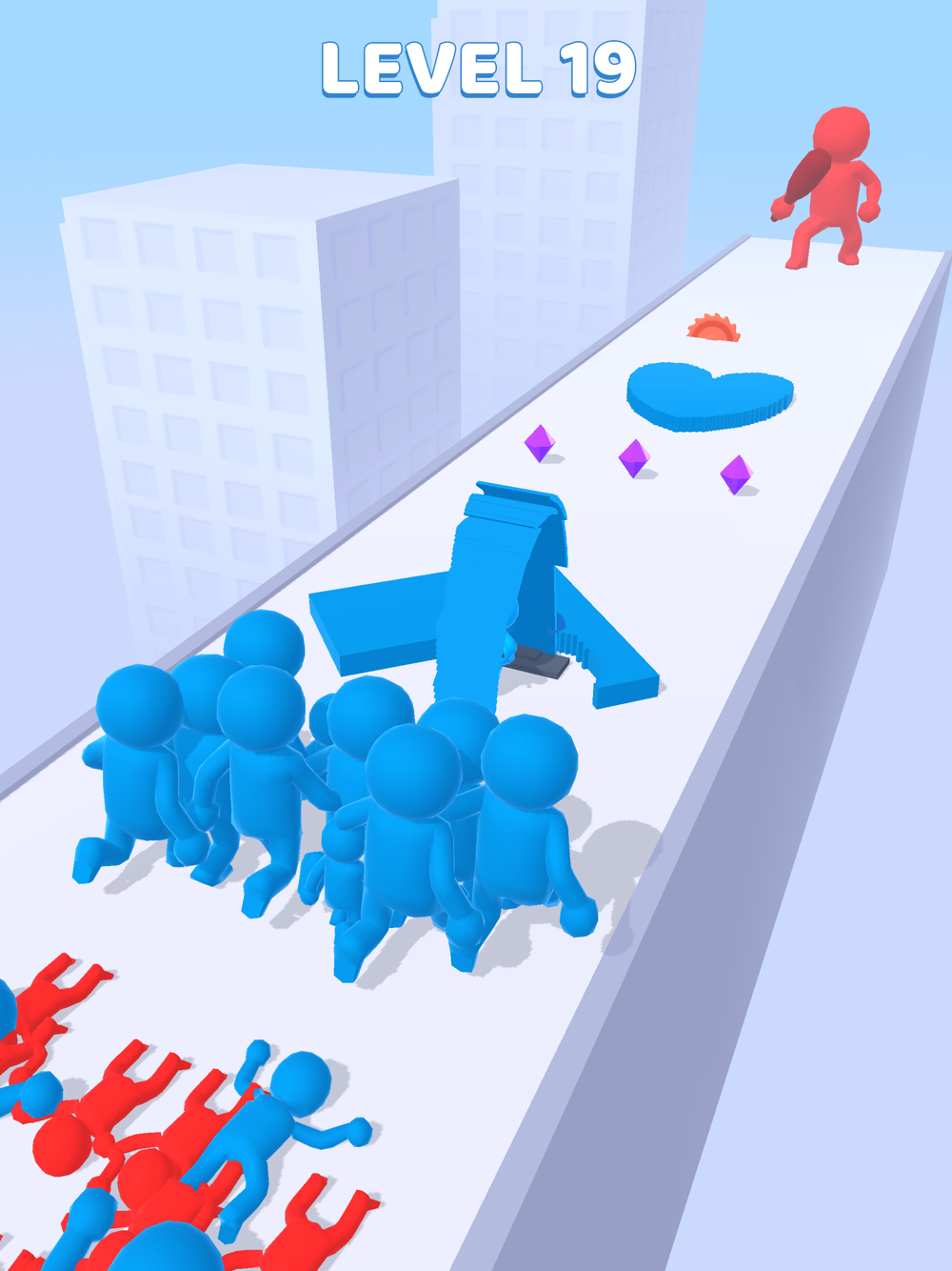 Gather your soldiers from the road and grind your enemies! Collect diamonds and be aware of saws!