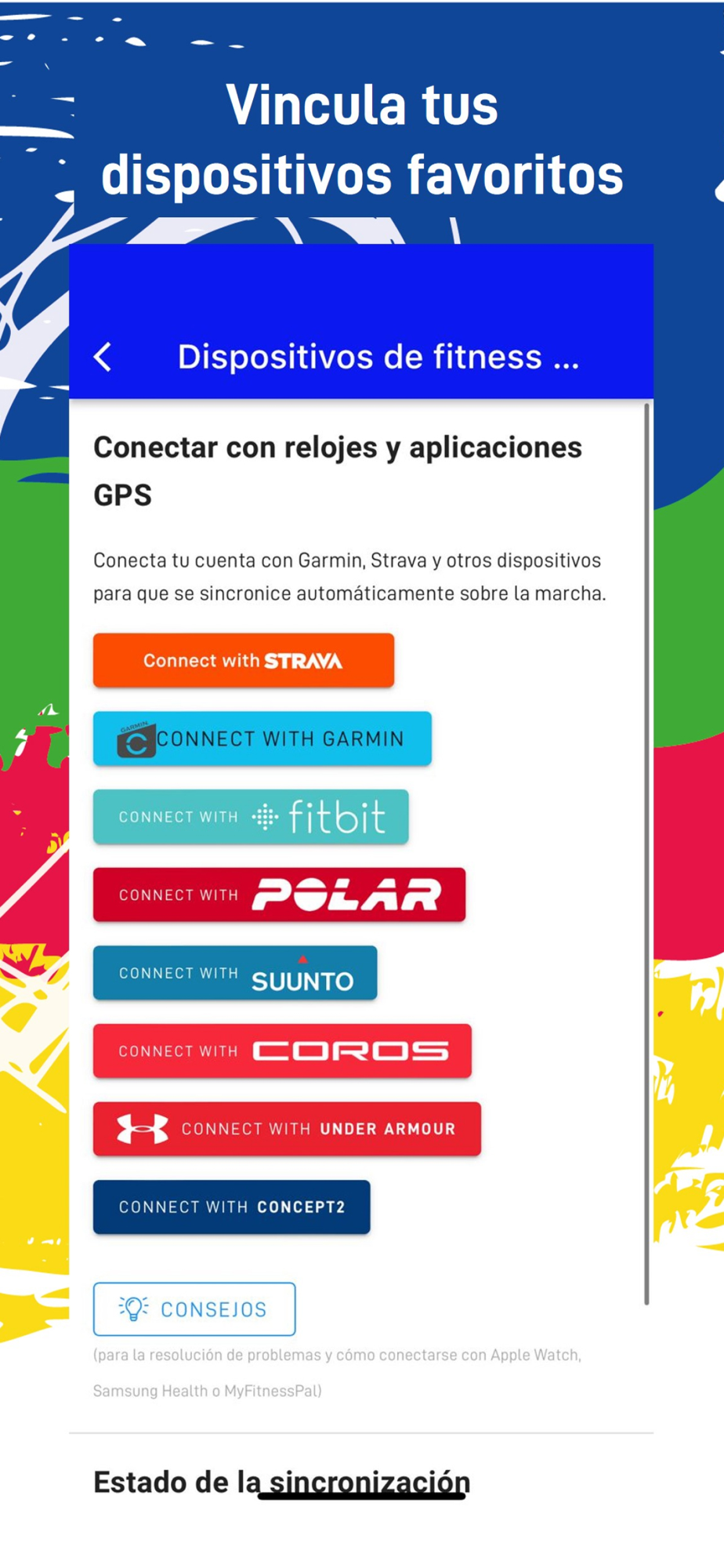 Nota sobre la integración con Apple HealthKit: Usamos la integración con Apple HealthKit para conectar y sincronizar tu Apple Watch. Solicitamos permiso para leer tus pasos diarios e información de entrenamiento para sincronizar esto con tu perfil y actualizar el progreso de tu desafío automáticamente.