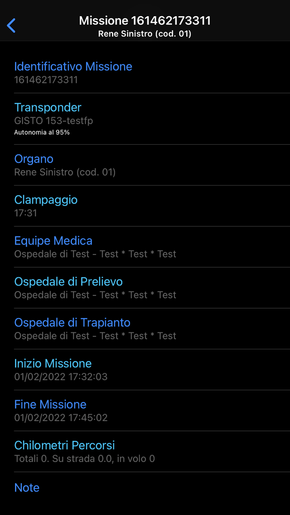 GistoApp consente ad utenti pre-registrati di avere il quadro delle missioni di trasporto organi umani durante il loro corso.