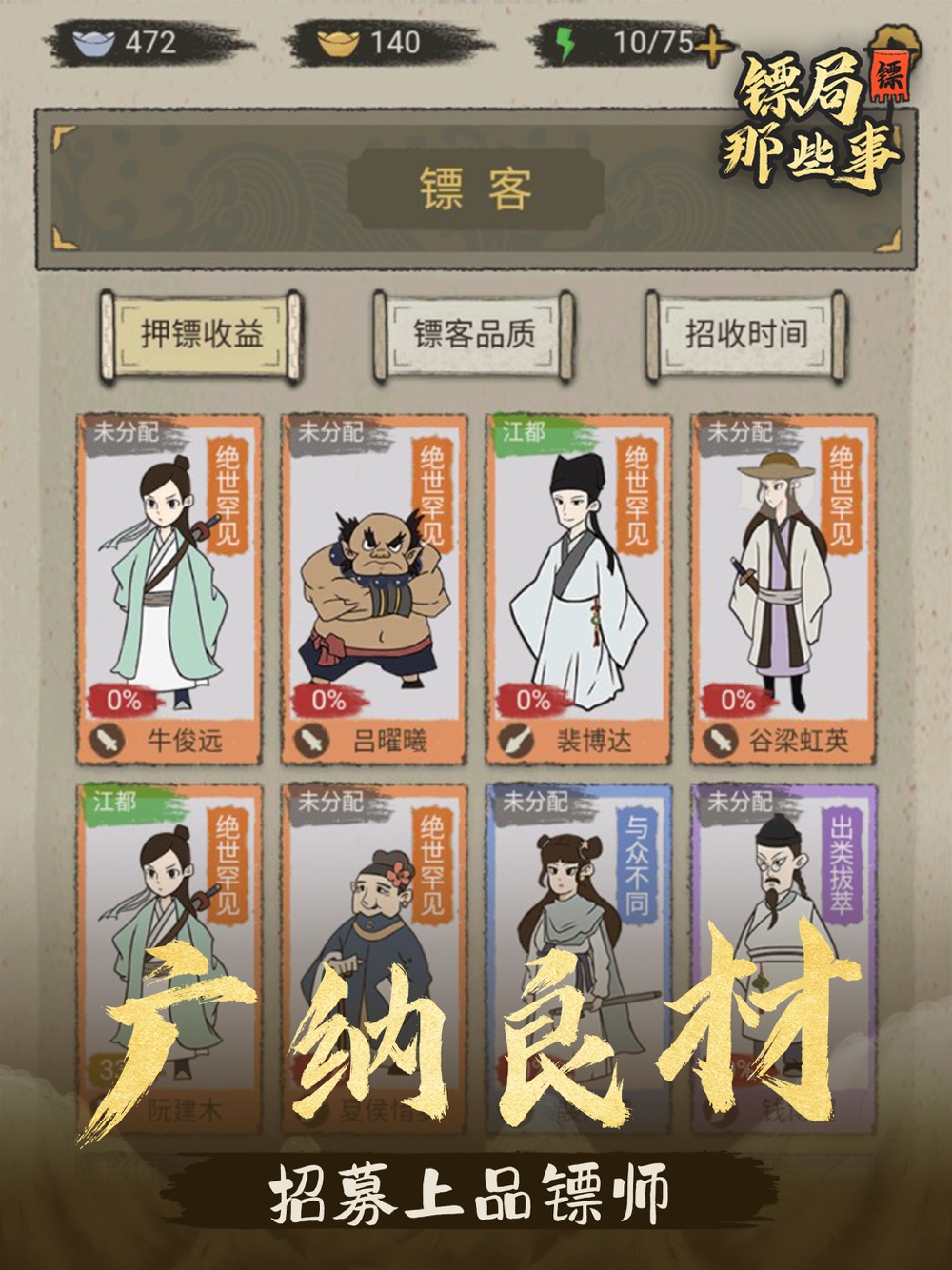 ◆ 招募高品质镖师、师爷,壮大镖局实力;