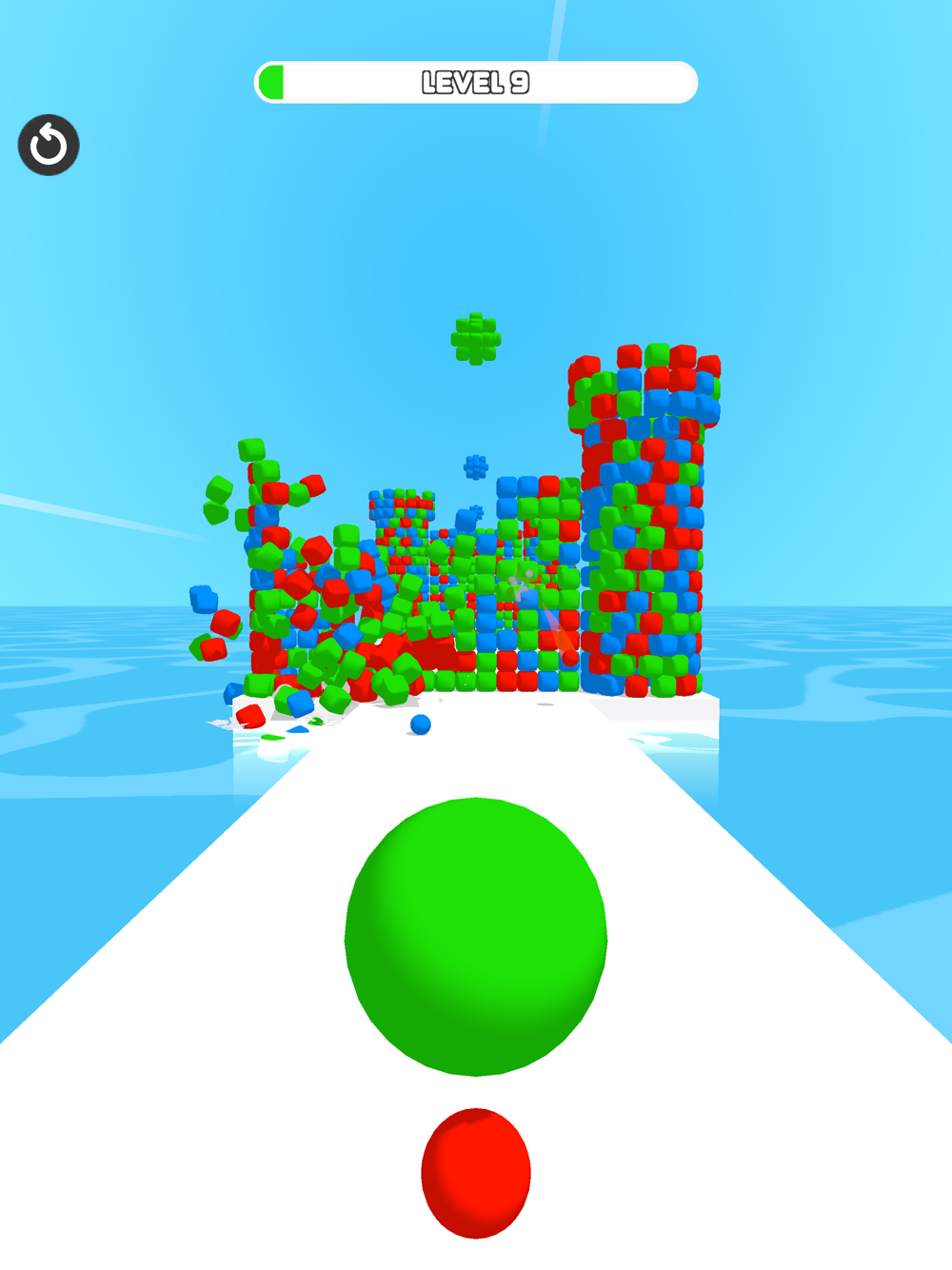 Tap to shoot the blocks that match your ball's color and work your way through to the finish line!