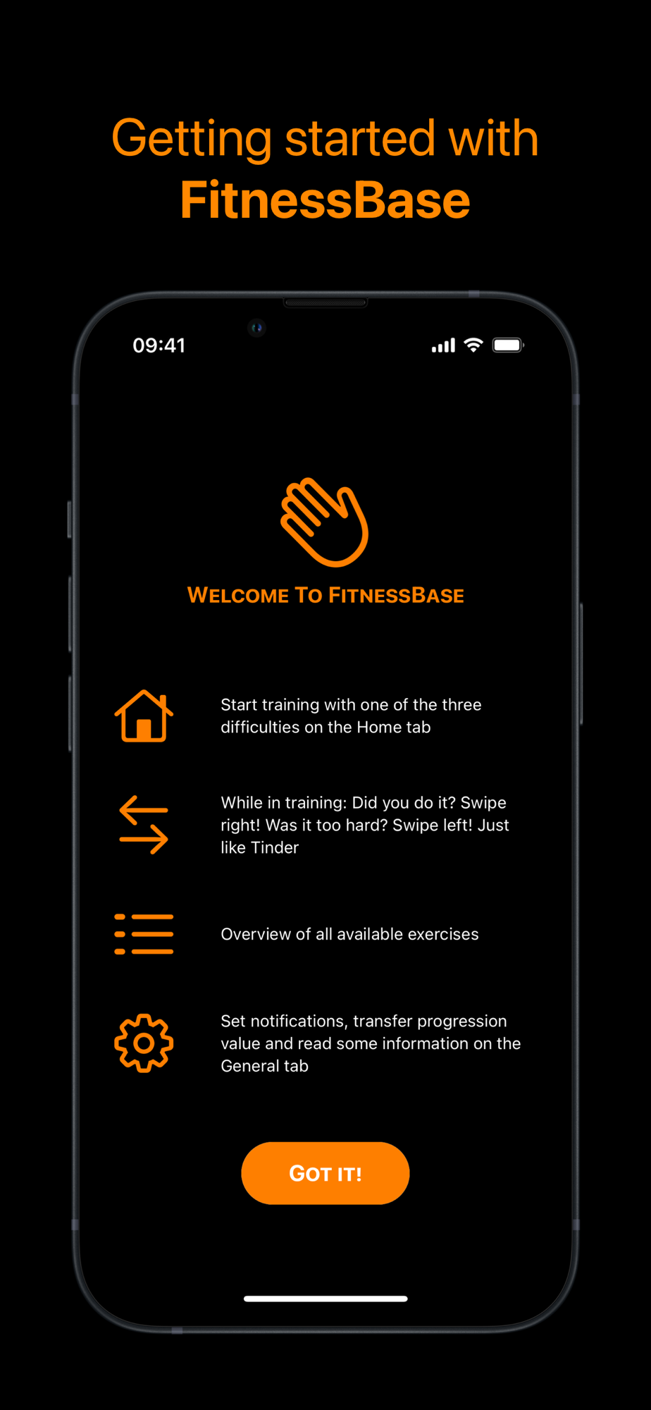 - choose a workout from 3 difficulty levels with many different exercises