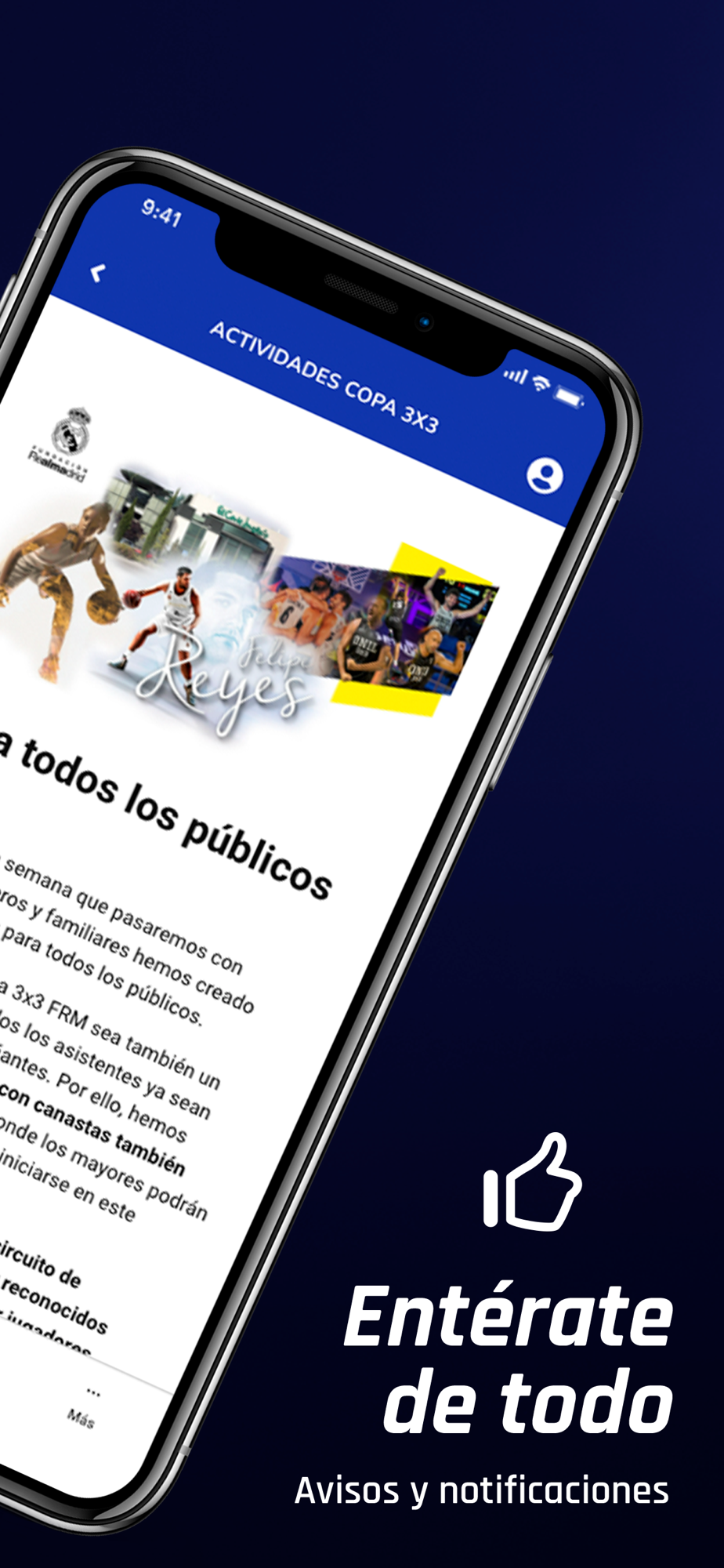 Official App of Copa 3x3 Fundacin Real Madrid. The whole competition on your mobile. Stay always informed and consult at any time the most important information, your parties, teams and the latest news. With our App you can enjoy: - Latest posts - Comment and share - Videos - Photos and Albums - Matches: Schedules, How to get there, Results, Classifications ... - Teams, Templates, Calendars ... - And much more You can also receive notices and notifications on your mobile with the most important information and always be up to date. Copa 3x3 Fundacin Real Madrid at all times with you!