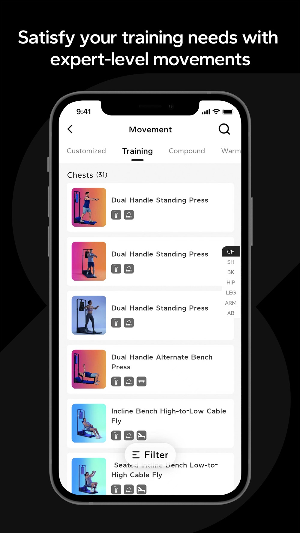 You can tailor your training plan to your specific needs by selecting preferred movements. Pick from hundreds of movements from Speediance library to have a distinctive training experience.