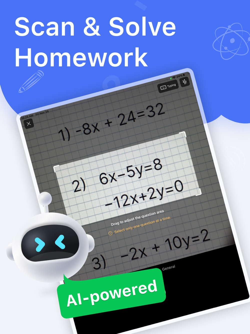 Homework Scanner is a powerful app that simplifies the way you handle assignments, test papers, books, and other study materials. With its advanced AI capabilities, it can effortlessly solve questions from all subjects and grades, serving as your dedicated math and general study helper. With just a tap, Homework Scanner provides you with the solution and answer to any question, boosting your learning efficiency and ensuring you're well-prepared for tests and exams.
