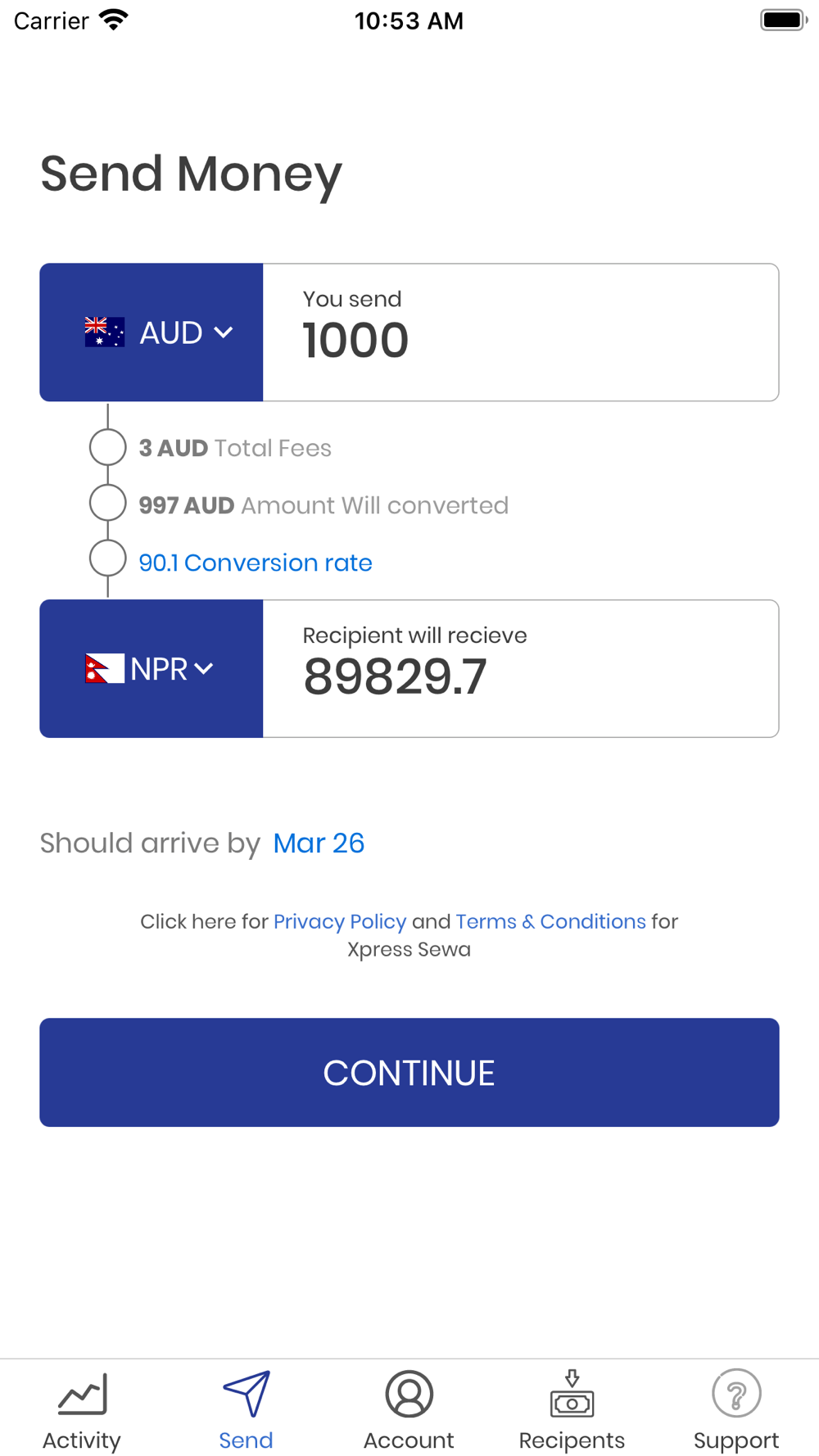 Follow the simple steps to send money: