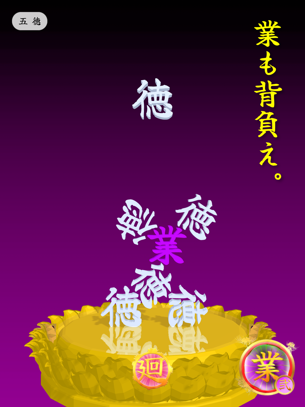 ボタンを押すと、徳の代わりに業の文字を積むことができます。