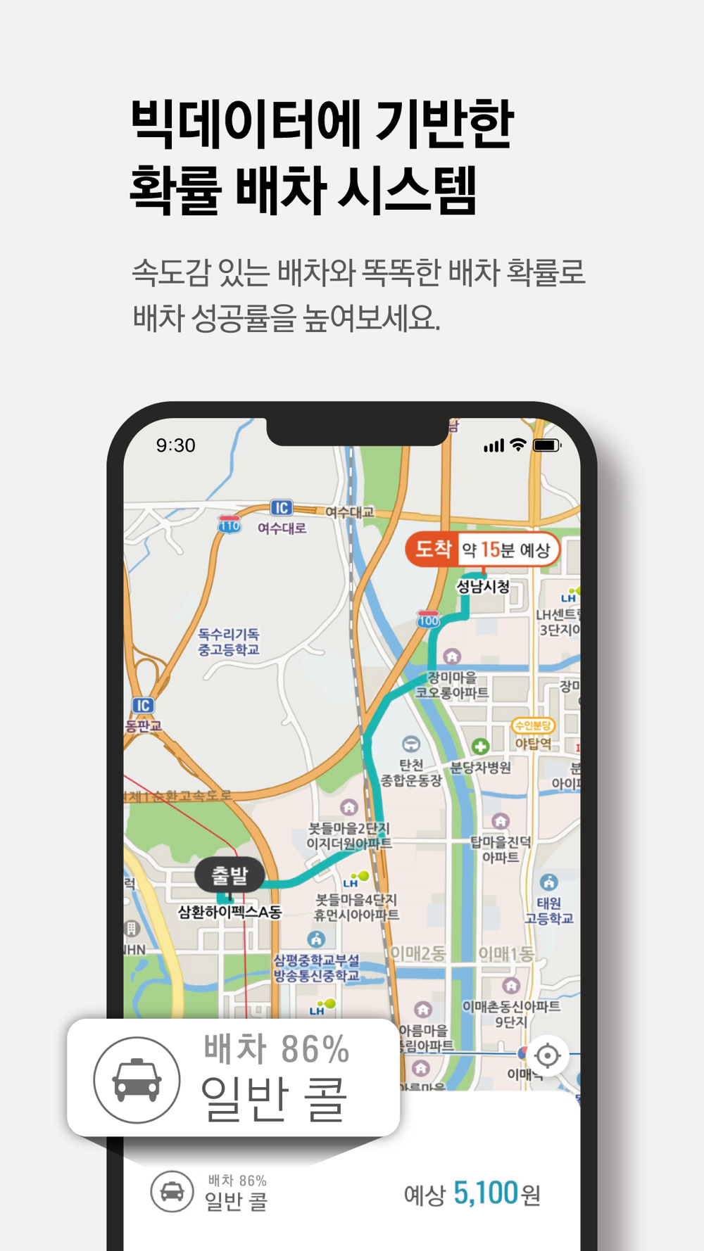 · 속도감있는 배차와 똑똑한 배차 확률로 배차 성공률을 높여보세요.