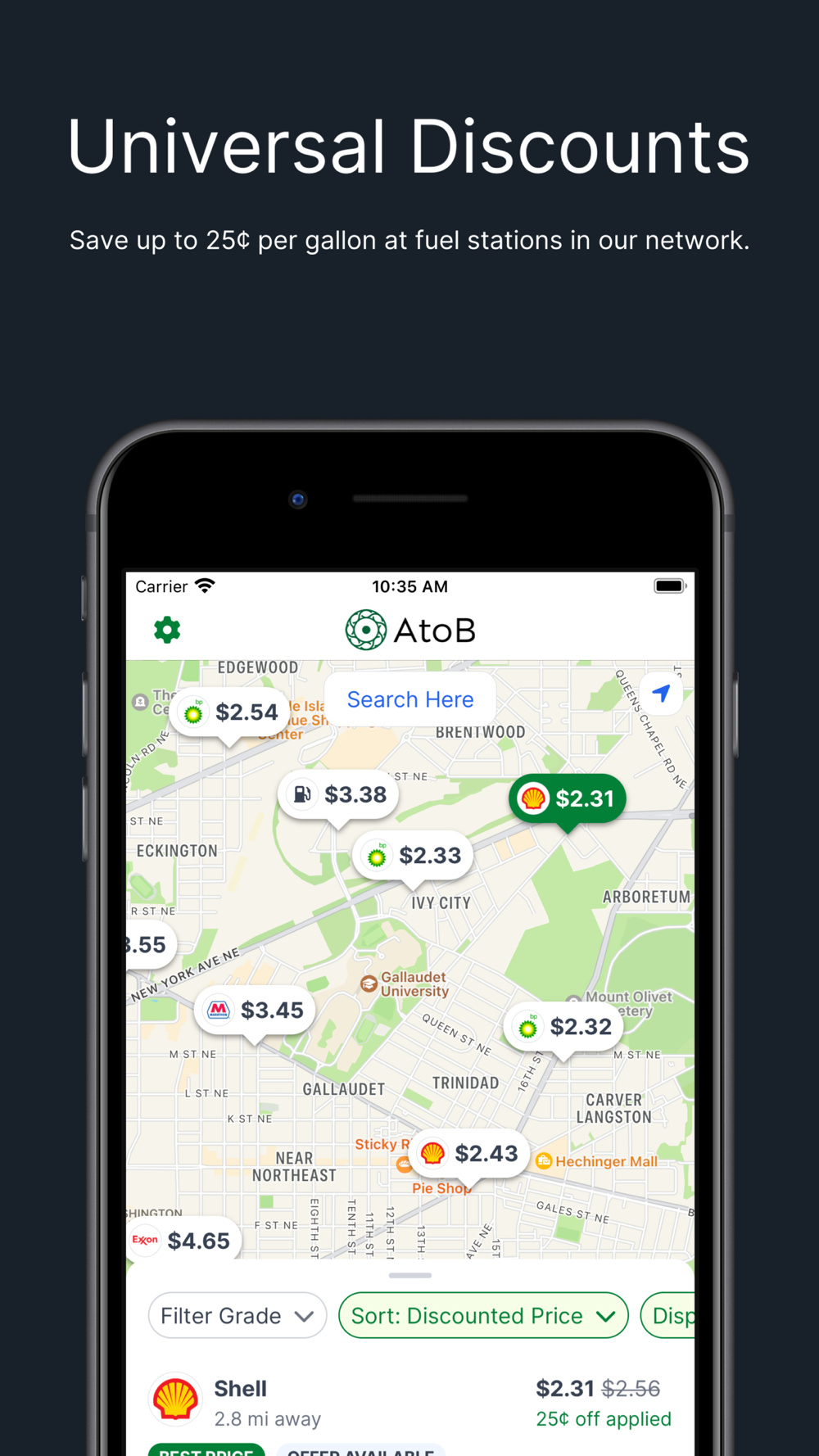 Welcome to the AtoB Driver Discount Network. We offer drivers discounts on a network of fuel providers when you use your AtoB fuel card.