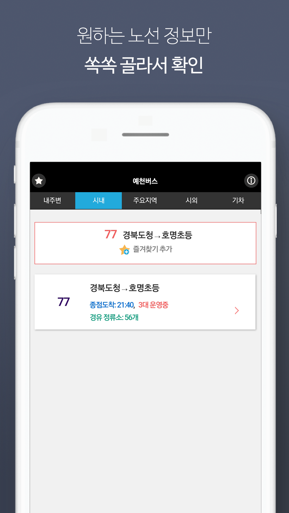 예천버스정보는 대중교통을 이용하는 시민, 방문 및 관광객 분들이 무료로 이용하실 수 있습니다.
