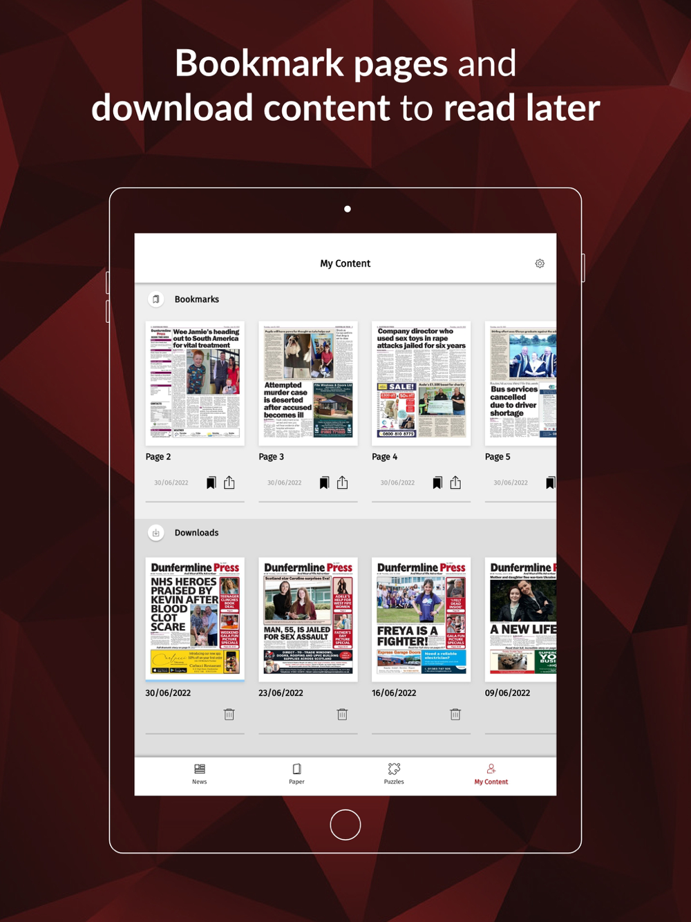 The Dunfermline Press app is the best way to keep up to date with all the breaking news, sports and events in Dunfermline and gives you the following great features…