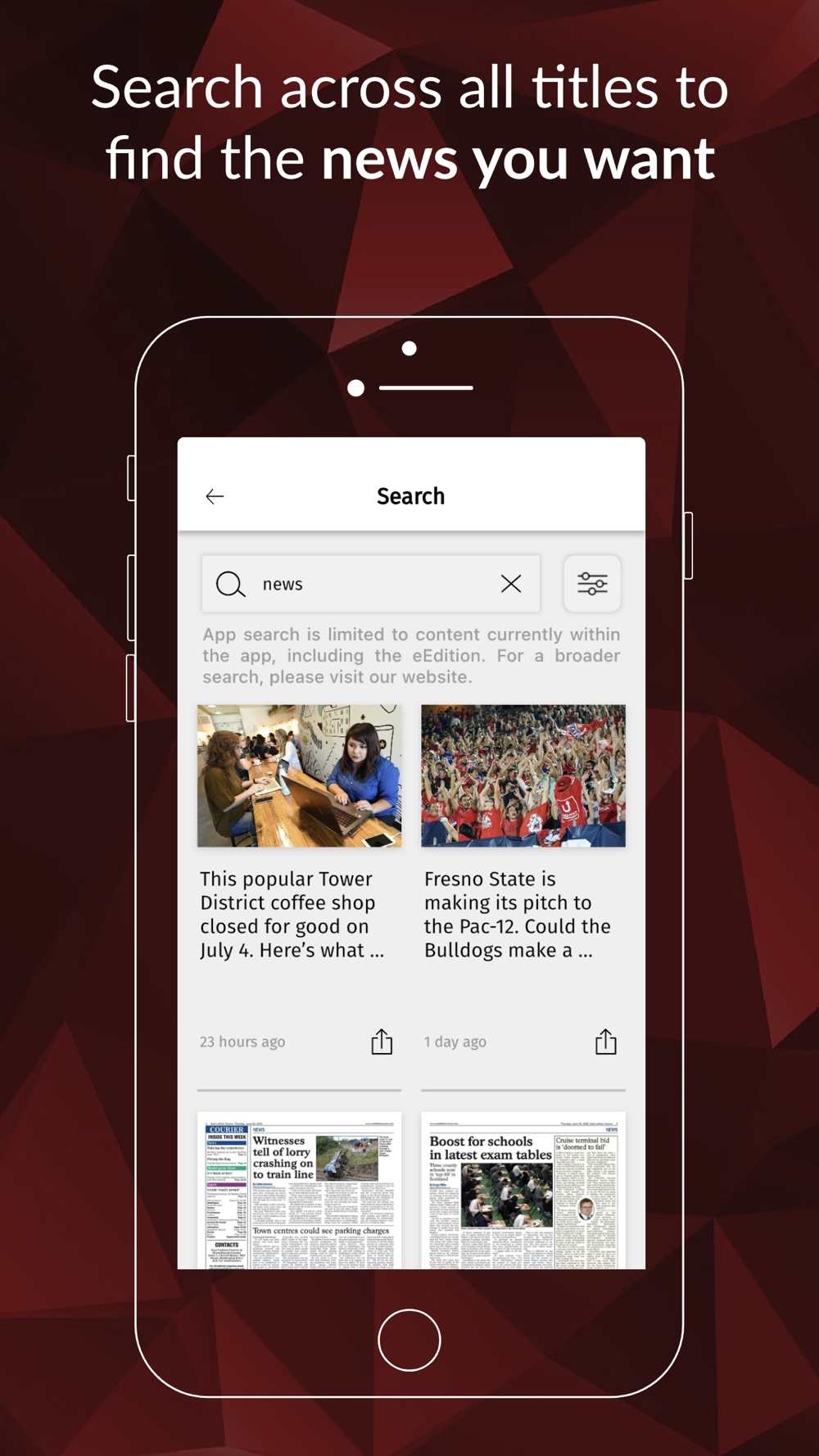 The East Lothian Courier app is the best way to keep up to date with all the breaking news, sports and events in East Lothian and gives you the following great features…