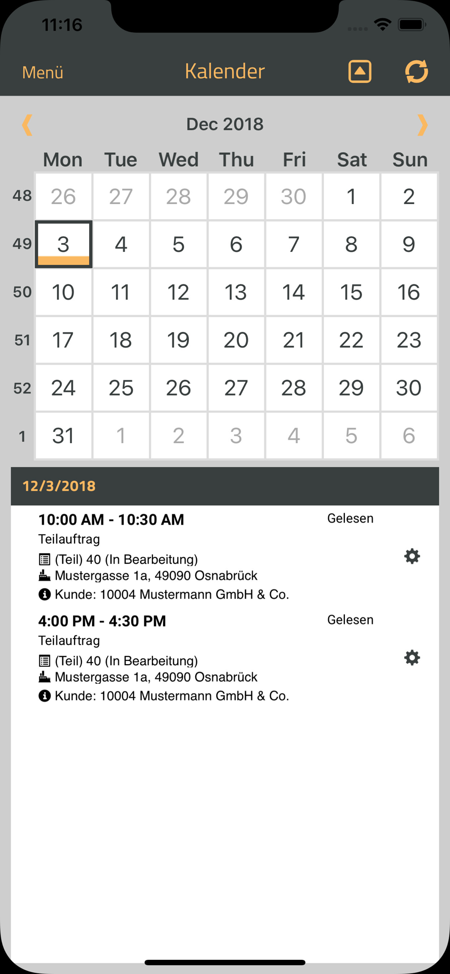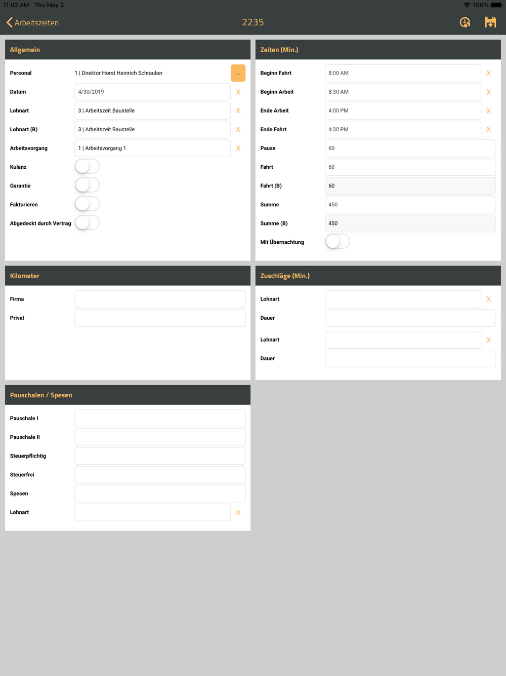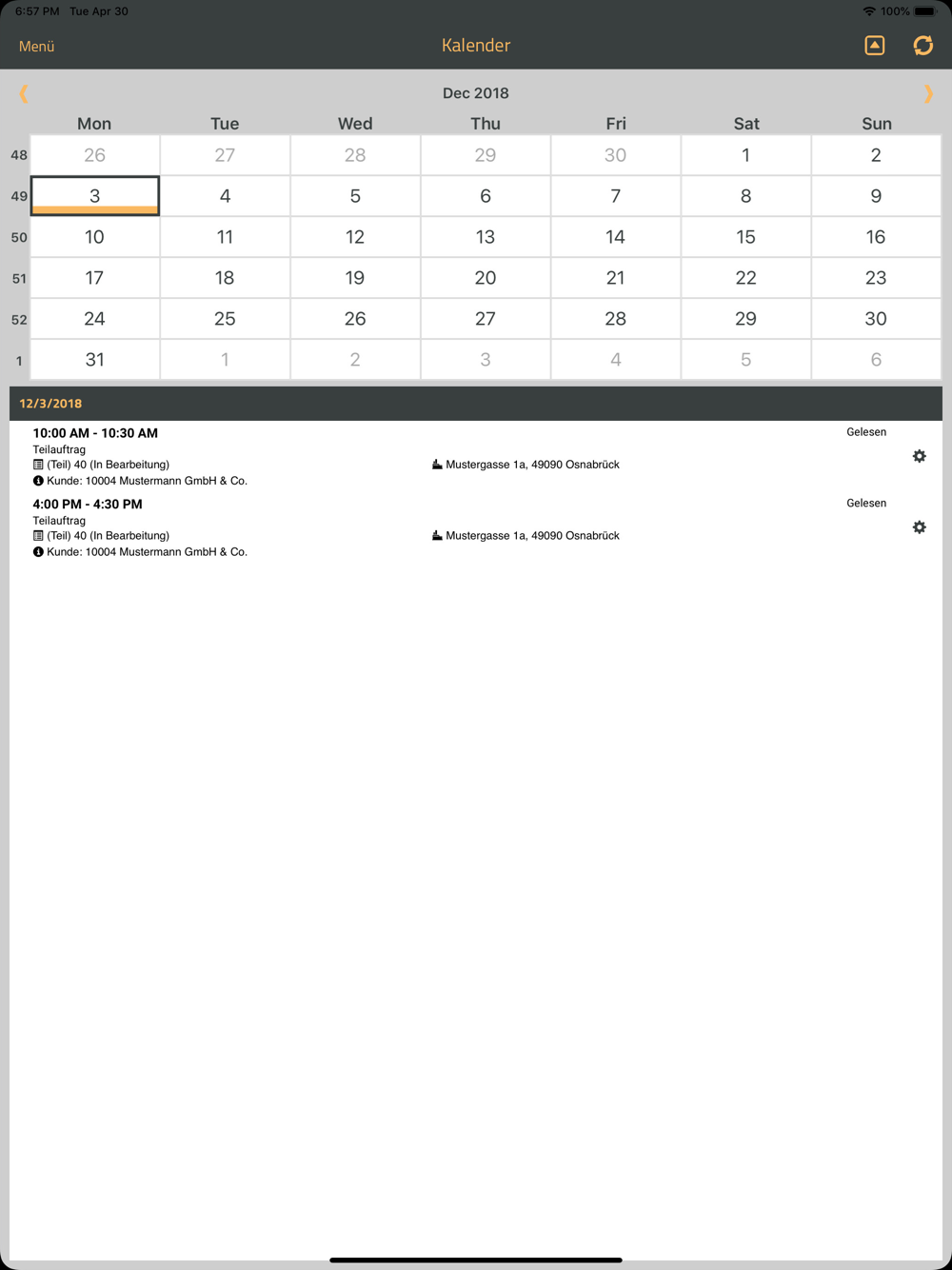 Sie können beispielsweise Ihre Aufträge einsehen und auf zu jedem Auftrag die Arbeitsberichte, Zeiten und verbauten Materialien erfassen.