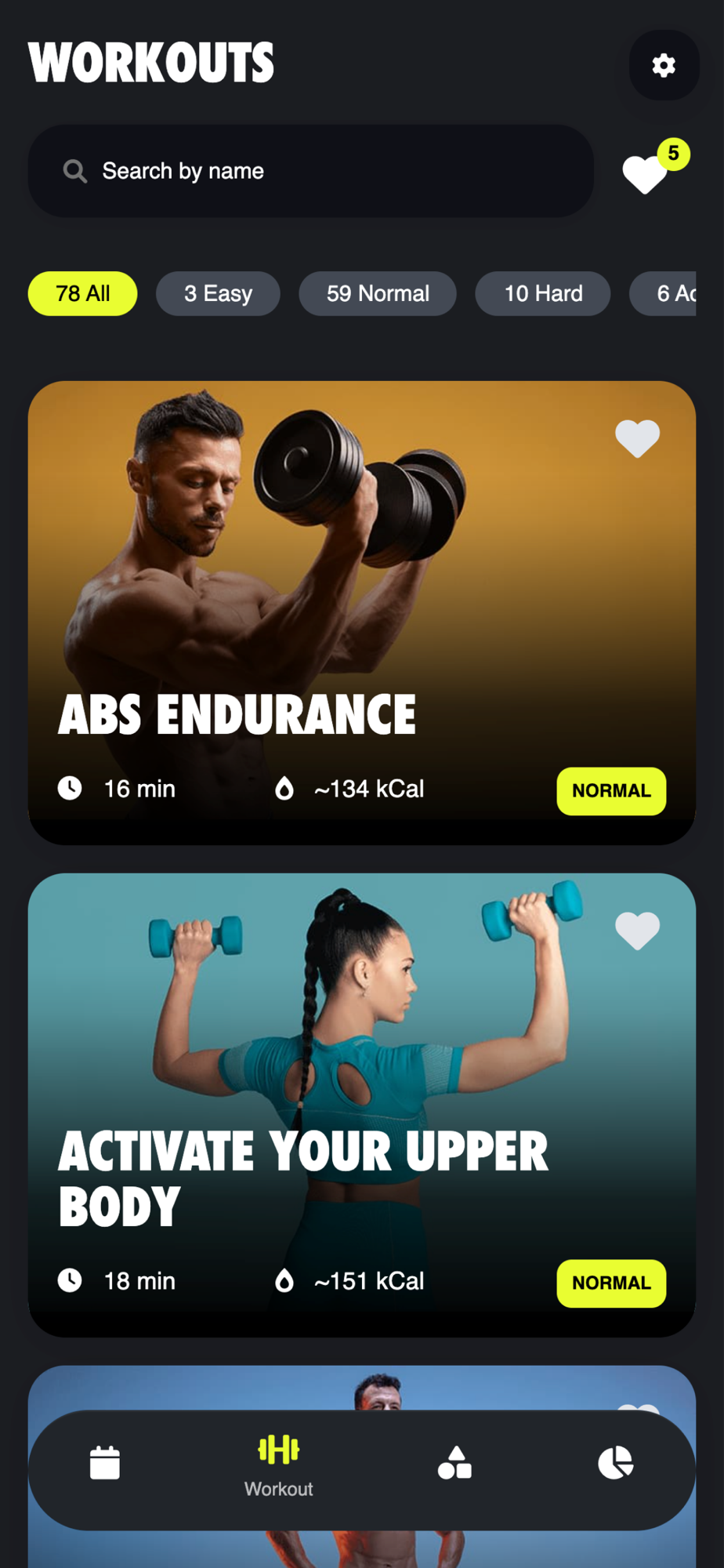 - Reports makes it easy to follow your workout completion, progress, and total calories burned.