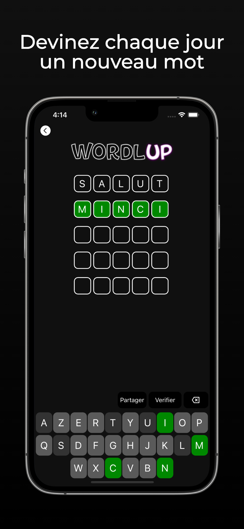 Chaque supposition doit être un mot valide contenant le bon nombre de lettres. Appuyez sur le bouton Entrée pour soumettre.