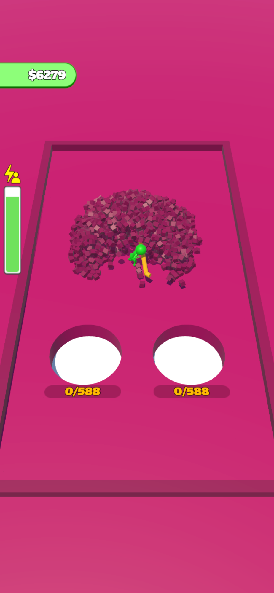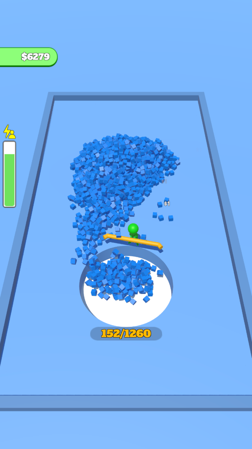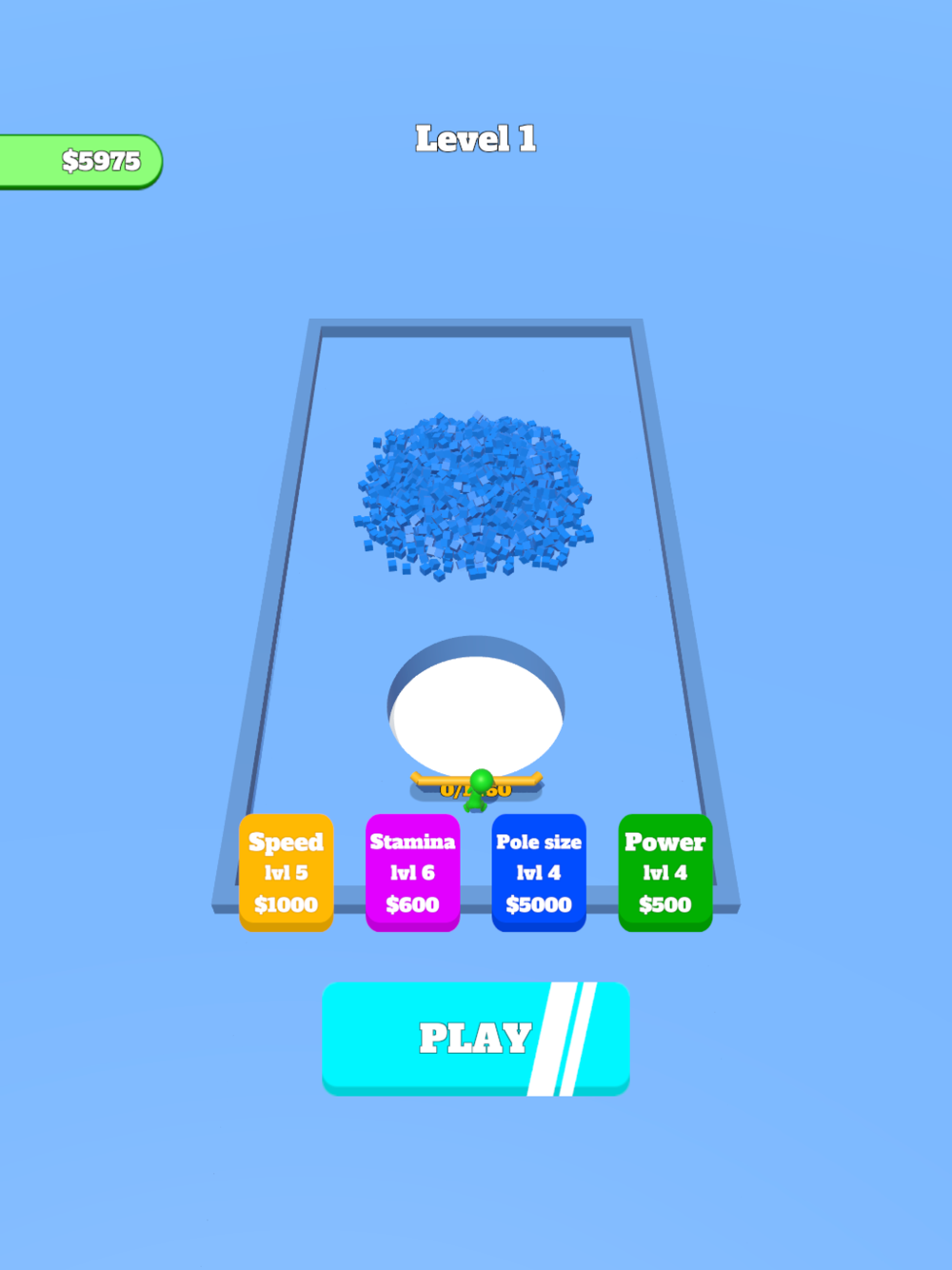 Push blocks into the holes. Impossible to do this from a first attempt as character is weak but as you push more blocks you earn more money to buy some upgrades.