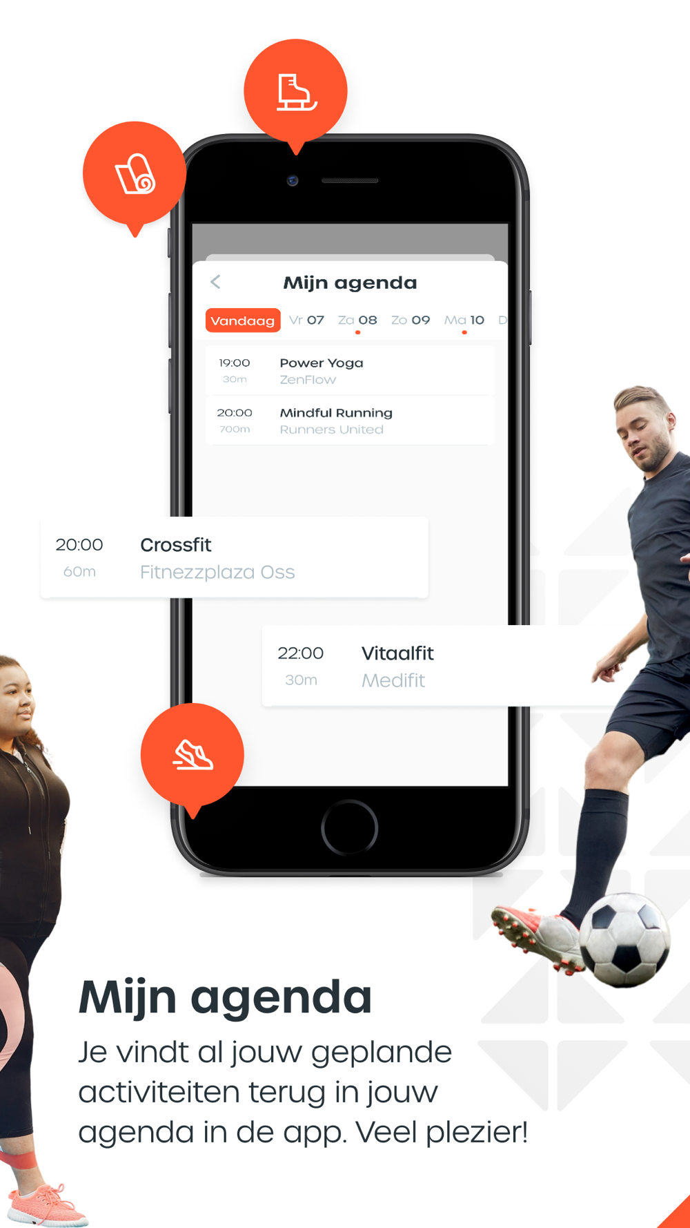 Met de app bekijk je overzichtelijk al het sport- en beweegaanbod in Nederland. Zo kun je bijvoorbeeld een personal training boeken, een training bij de sportclub in de buurt of deelnemen aan een wandelgroep. Kies de activiteit die bij jou past en reserveer je plek.