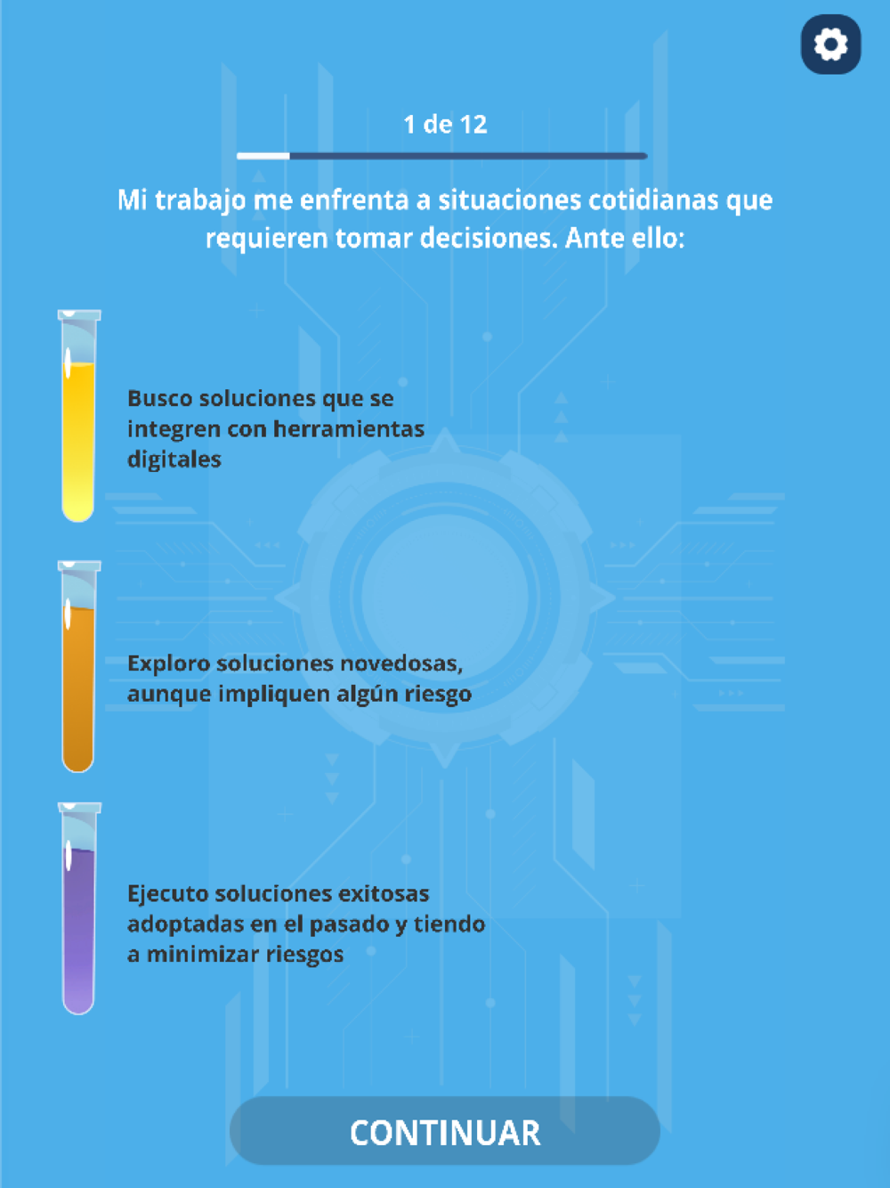 Esta aplicación móvil nos ayuda a conocer el blend de mindset de profesionales a través del planteamiento de 12 situaciones laborales y el abordaje de éstas.