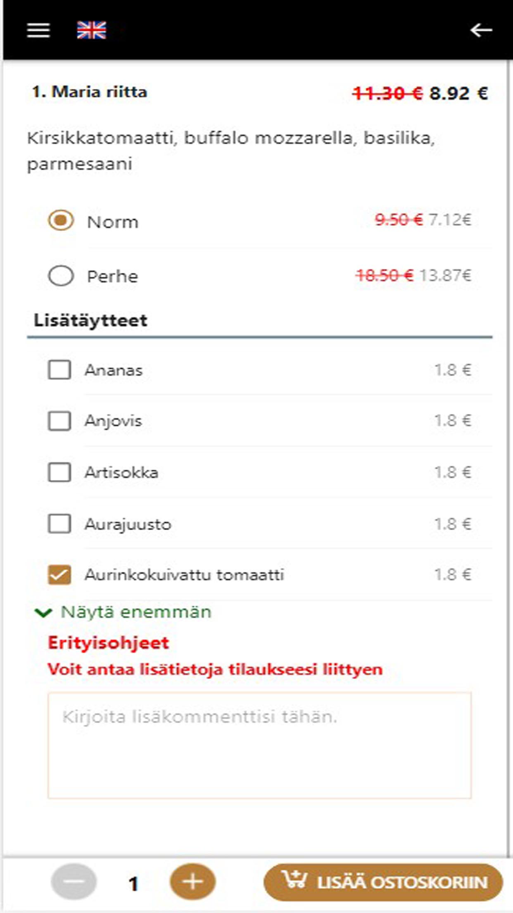 After choosing, you may add the selected pizza to the cart, customize it with selective toppings. To complement it, you may add a cart of your favorite beverage or dessert, and finally go for checkout.
