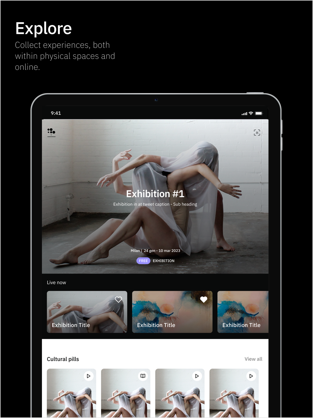 Join Particle and make art essential in your everyday life. From phygital experiences to serendipitous explorations, from world famous artists to off-the-beaten-track niche galleries, Particle can become your faithful chaperon to explore art, heritage and culture like never before.