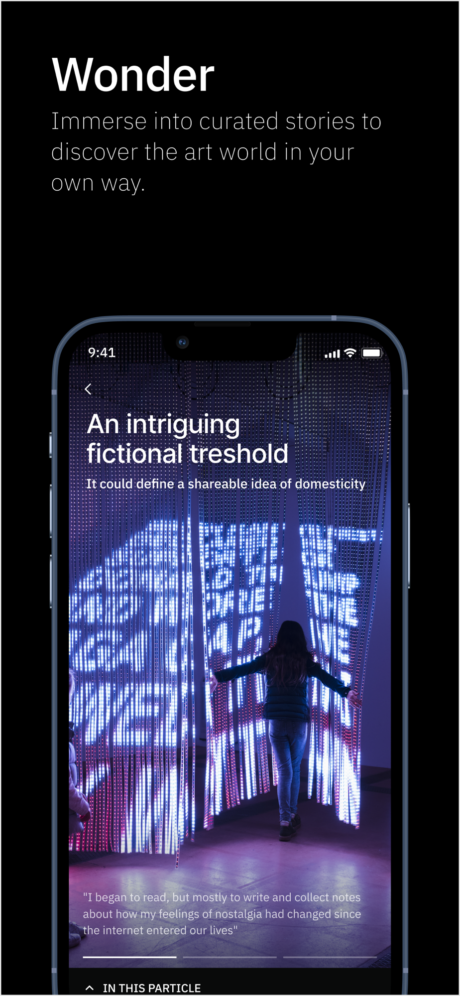 Lose yourself in the never-ending flow of particles: immerse into curated stories to discover the art world at your own pace.