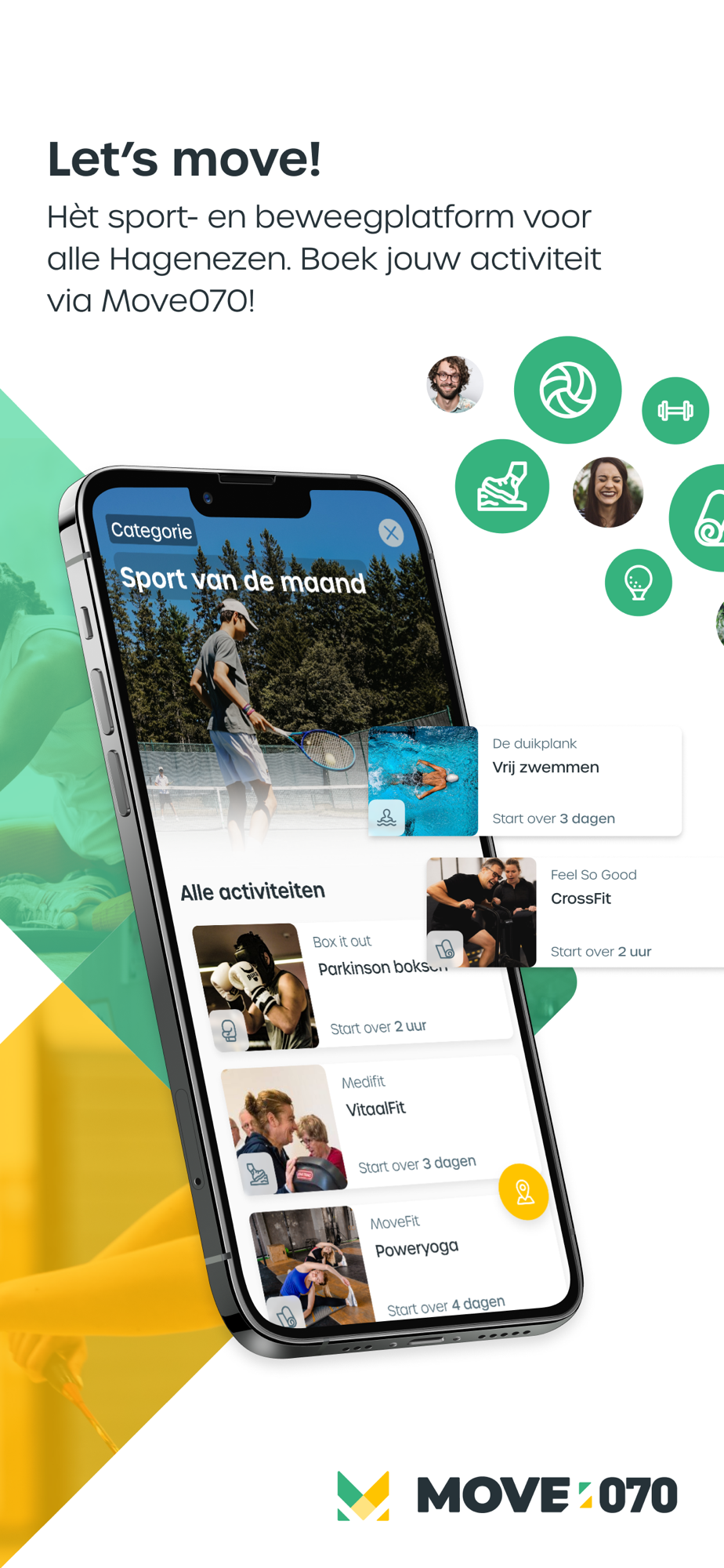 De Move070 app geeft jou inzicht in al het sport- en beweegaanbod in de gemeente Den Haag. Kies een activiteit die jij leuk vindt en kom in beweging!